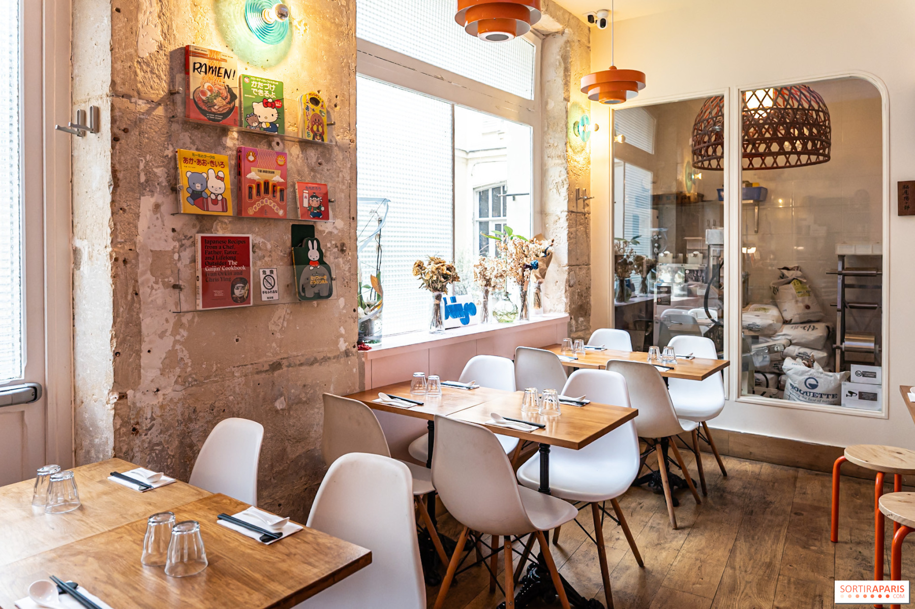 Esimene saal avaneb vaatega avatud kööki, kus roosad pingid sobituvad siniste seintega ning loob rahustava õhkkonna. Teine saal avastub pärast pikka diskokeelset koridori ning juhatab sisehoovi. Sealt avanevad vaated muljetavaldavale nuudlimasinale, mis asub väikeses klaasruumis, ning vajadusel saab imetluseks jälgida peenelt meisterdatud nuudlite valmistamist peakokk Guillaume’i osavate kätega.
