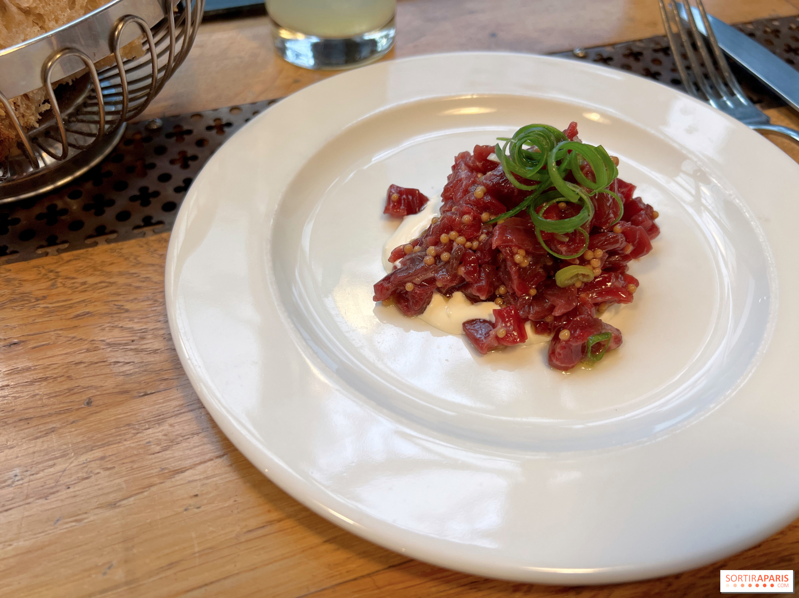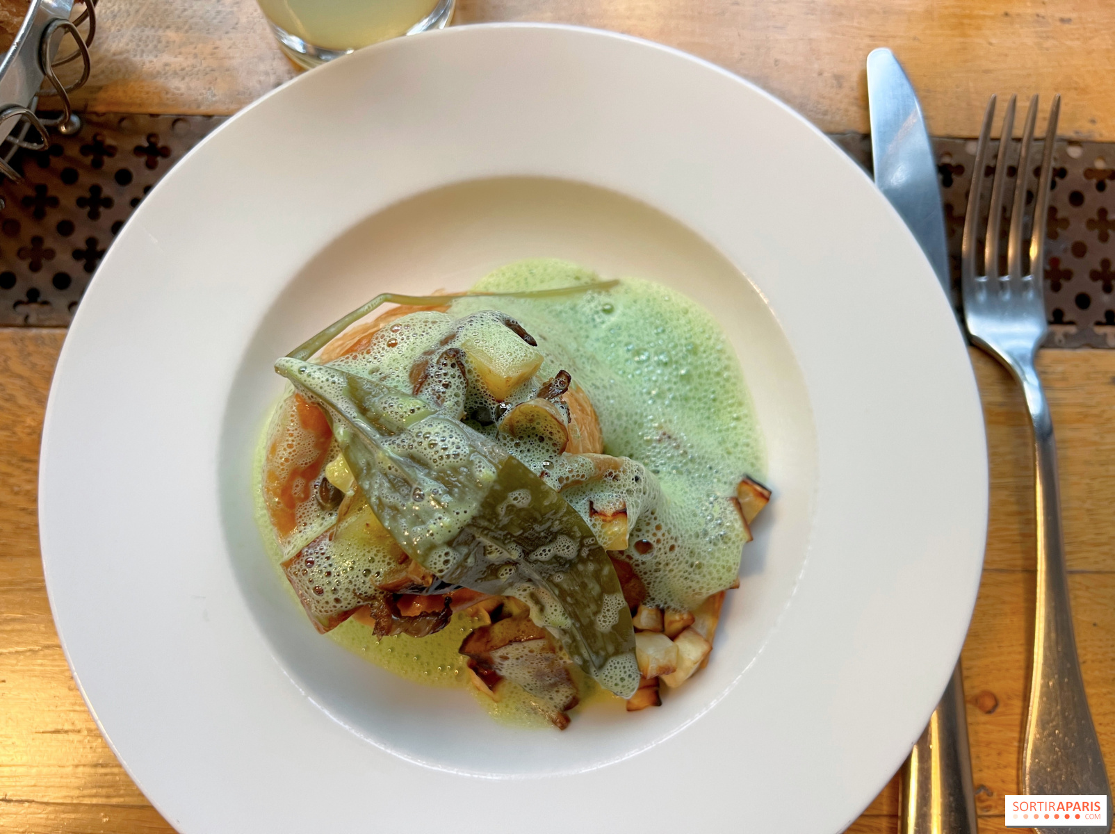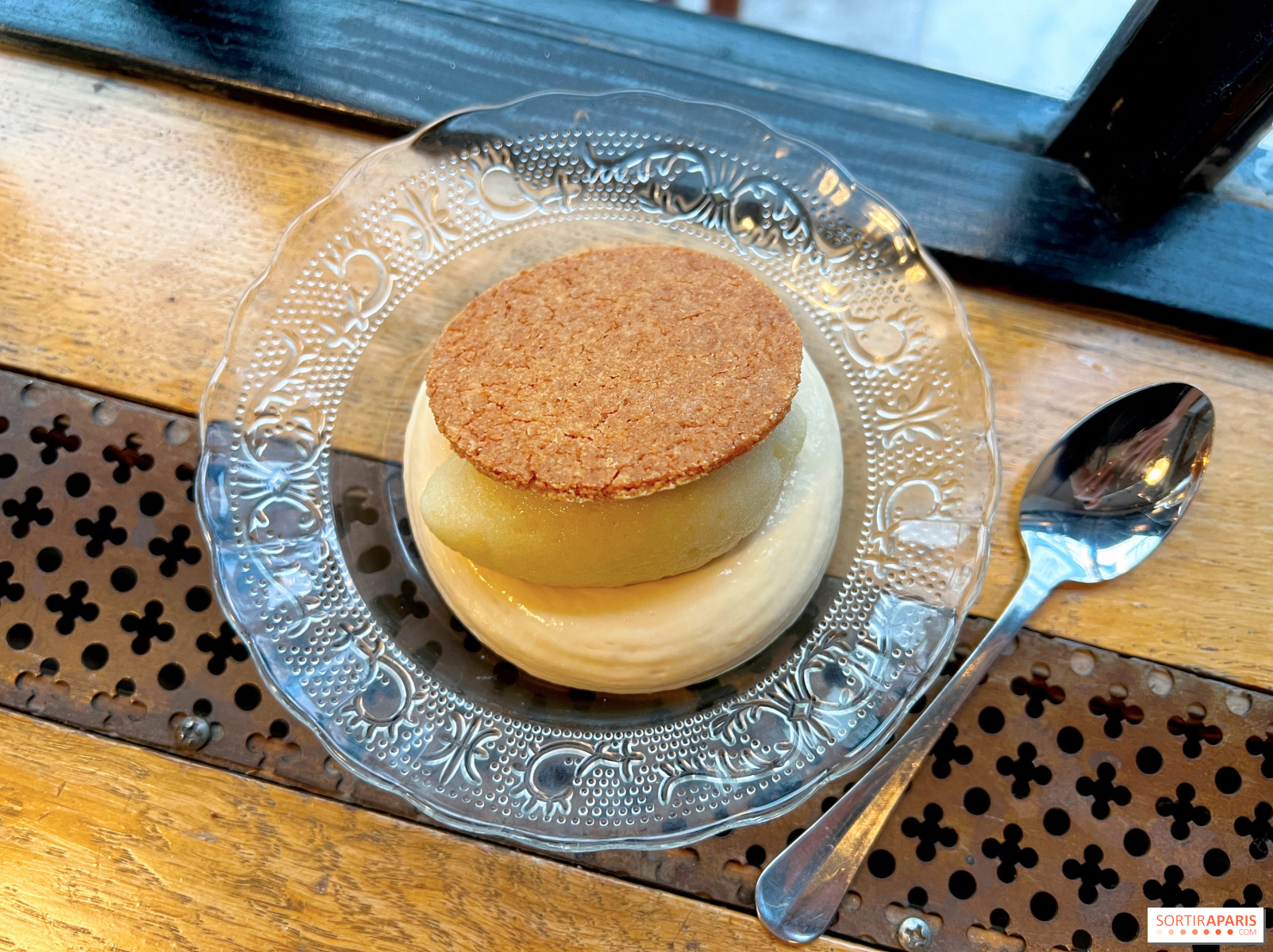 Veiseliha tartar toormas mettise tooni otsast peale, pakkudes teravat maitset, mis väldib liigset keerukust. Magustoit, mille põhialuseks on bretooni kruusaküpsis ja õun, võlub oma klassikalise stiiliga, kuigi kogu konkreetne söök võib tunduda veidi tagasihoidlikum kui ülejäänud einestus. Kodune sidrunivesi (5€), kas siis gaasiga või ilma, jätkab seda lihtsuse ja hoolikalt valitud maitseidee viisi.