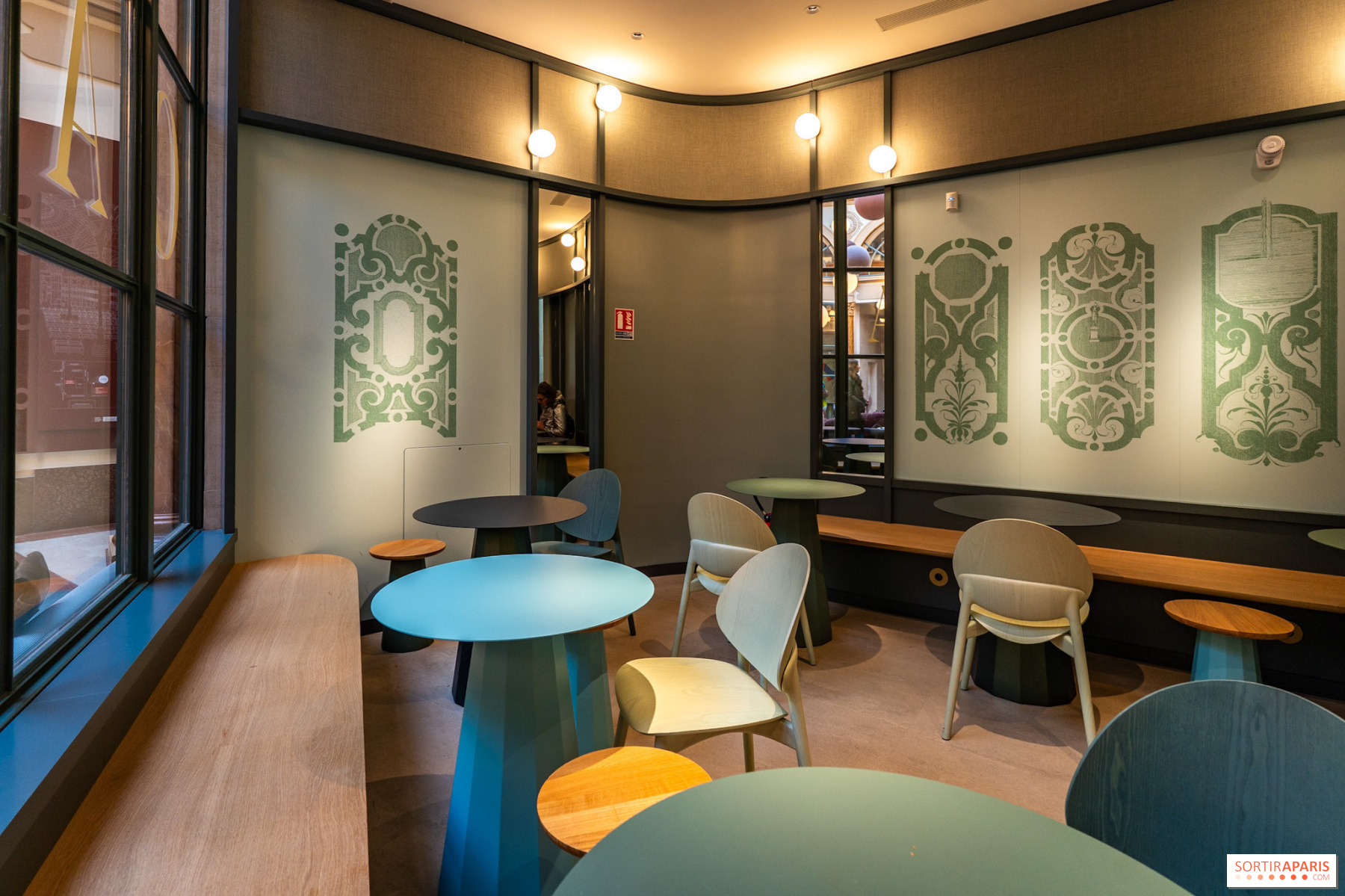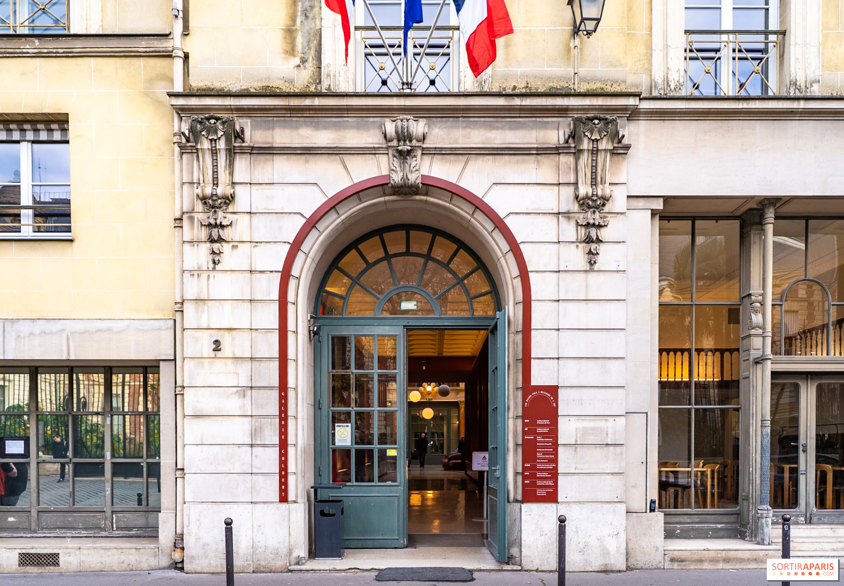 Käime ka Le Grand Colbert restoranis, millele kuulub ikooniline Art Nouveau stiilis sisekujundus ning millede monumentide nimekirja on kantud, ning mida kasutatakse sageli filmide jaoks. Asub väikeste-Champsi tänava poole sissepääsust, pakkudes hästi säilinud Belle Époque õhkkonda, mis on juba ise väärt visiiti. Sellel kohal toimuvad regulaarselt konverentsid, raamatuesitlused, filmiseansid ja arutelud, eriti tähistades Euroopa kultuuripärandi päevi või Lugemise öid.