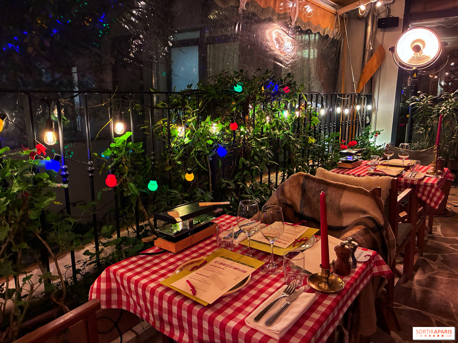 Selle talvepuhkemaja leidmiseks tuleb lihtsalt ronida Montmartre'ile, mitte kaugel rue Lepic'ist, ja siseneda sellesse hotelli ja selle väikesesse restorani. Raclette'i pidu ei toimu aga sees, vaid veidi kaugemal, kaetud ja jõuludeks kaunistatud terrassil, kus on ilusad girlandid, kaunis kuusk ja isegi pähklipureja, mis loovad maalilise ja piduliku õhkkonna. Meile meeldib see väga!