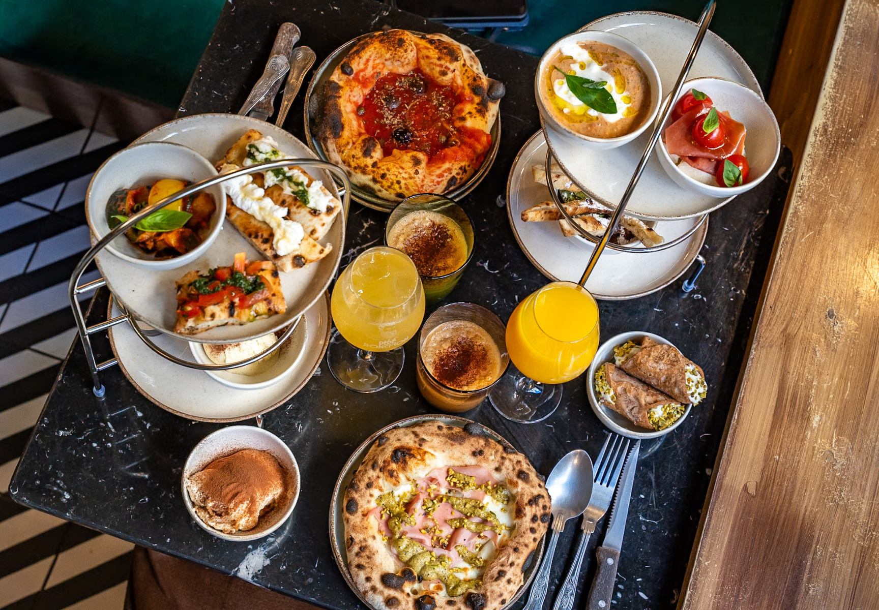 Pidimme kovasti kaikkien erikoisuuksien kolmiportaisesta esillepanosta. Jokaisella henkilöllä on oma näytteensä, joten voitte syödä omaan tahtiinne ja jakaa ilman, että astutte toistenne varpaille. Voit aloittaa lämpimällä pizzettalla ennen kuin siirryt mozzarellaan tai focacciaan. Lyhyesti sanottuna voit aloittaa brunssin miten haluat - onhan nyt viikonloppu.