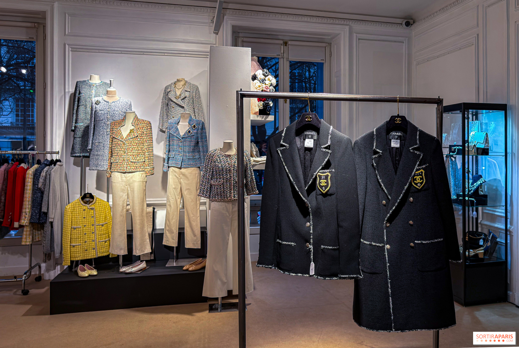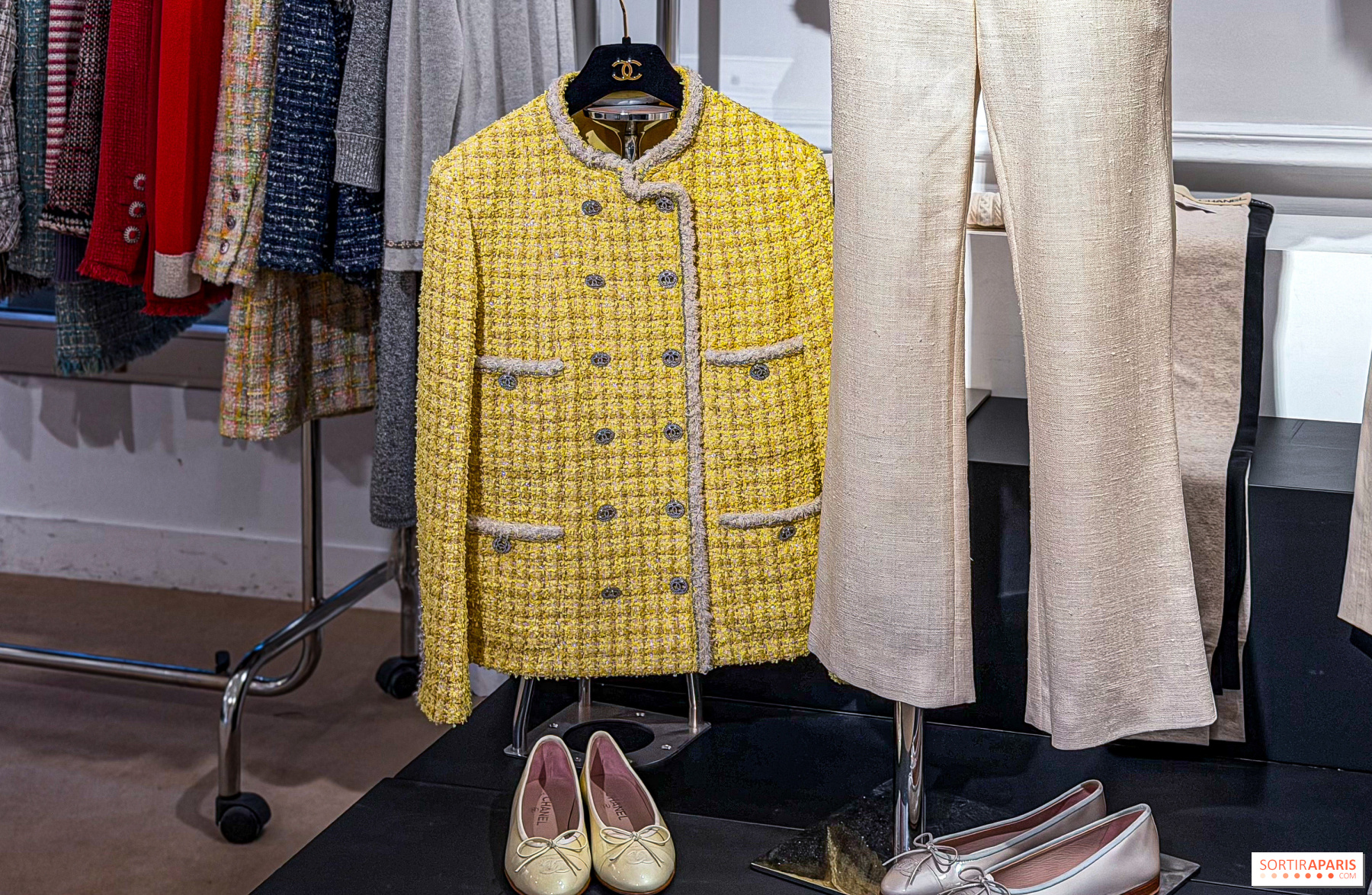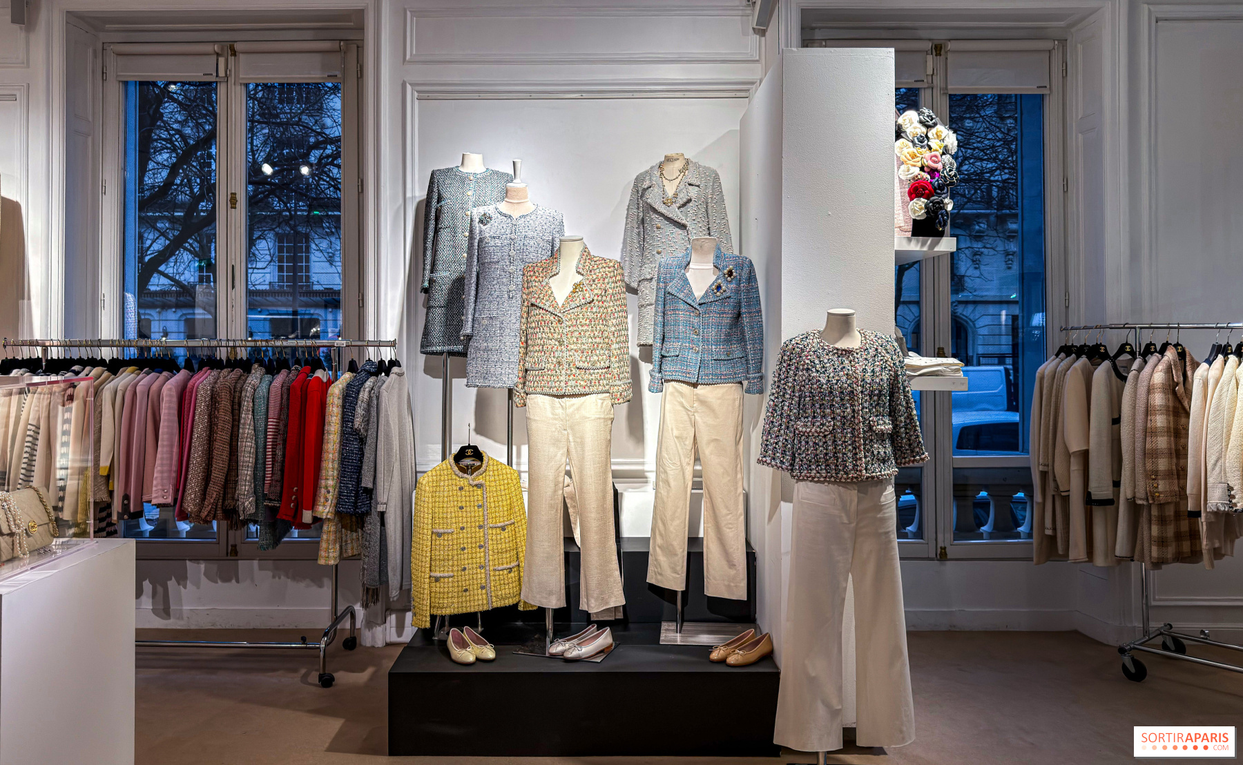Mannequinien, ripustimilla ja näyttelyikkunoissa on esillä 367 huolella valikoitua kappaletta sesongin, tyylin ja värin mukaan. Tämä poikkeuksellinen muotiarsenaali tarjoaa katsauksen Gabrielle "Coco" Chanelin vuonna 1910 perustaman talon historiaan, jonka nykyisiä luomuksia edustavat Karl Lagerfeldin ja Virginie Viardin suunnittelemat mallistot. Mukana on: 130 takkia, pukuja ja päällystakkeja, 70 kasmirneuletta, 80 korua ja korujat. Lisänä ovat myös Première Mini -kellot, Ultra-rusukorut, käsilaukut, ballerinat ja sandaalit.