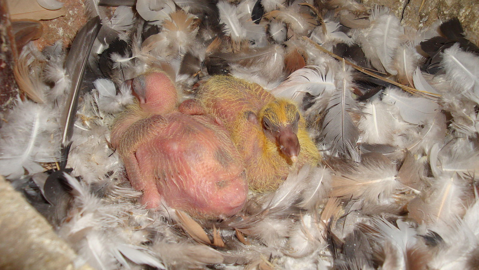 Kyyhkynpesän kanssa ei siis ole helppo tulla tekemisiin. Ja kuitenkin niiden poikaset ovat siellä: ne eivät poistu perheen kehdosta ennen kuin ne ovat aikuisia, kolmen viikon kuluttua. Aivan oikein, ne kasvavat nopeasti! Siksi kyyhkysiä ei koskaan nähdä poikastensa seurassa. Nyt tiedämme, että mielessäsi on vielä yksi kysymys: miltä kyyhkysenpoikanen näyttää? Selvitä se alta!