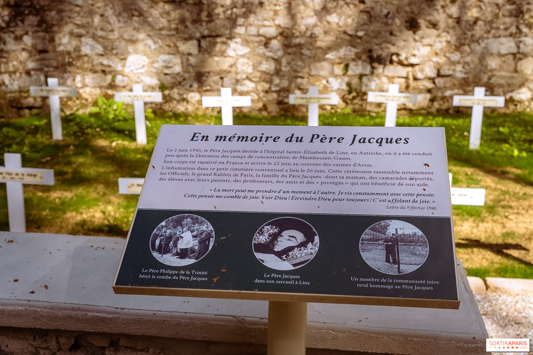 בלב חצר המנזר נמצא \"מִּזְכָּרֹת\" Père Jacques de Jésus, והוא כולו ללא תשלום. memorial זה מתאר את שלבי חייו של הַאָב Père Jacques ומאפשר להבחין ביסודות האינטלקטואליים, המוסריים והרוחניים שהנחו את מעשיו. הוא פתוח לכולם, כל יום משעה 9:00 עד 17:45. סיורים מודרכים יכולים גם הם להתקיים בבקשה, ובמיוחד עבור קבוצות בתי ספר. ימי המורשת הם גם ההזדמנות האידיאלית לבוא: בכל שנה לרגל אירוע זה המנזר פותח את דלתותיו עם ביקור חופשי בזכרון ובגן, סיור מודרך באתר והקרנת הסרט Par la Croix vers la lumière.