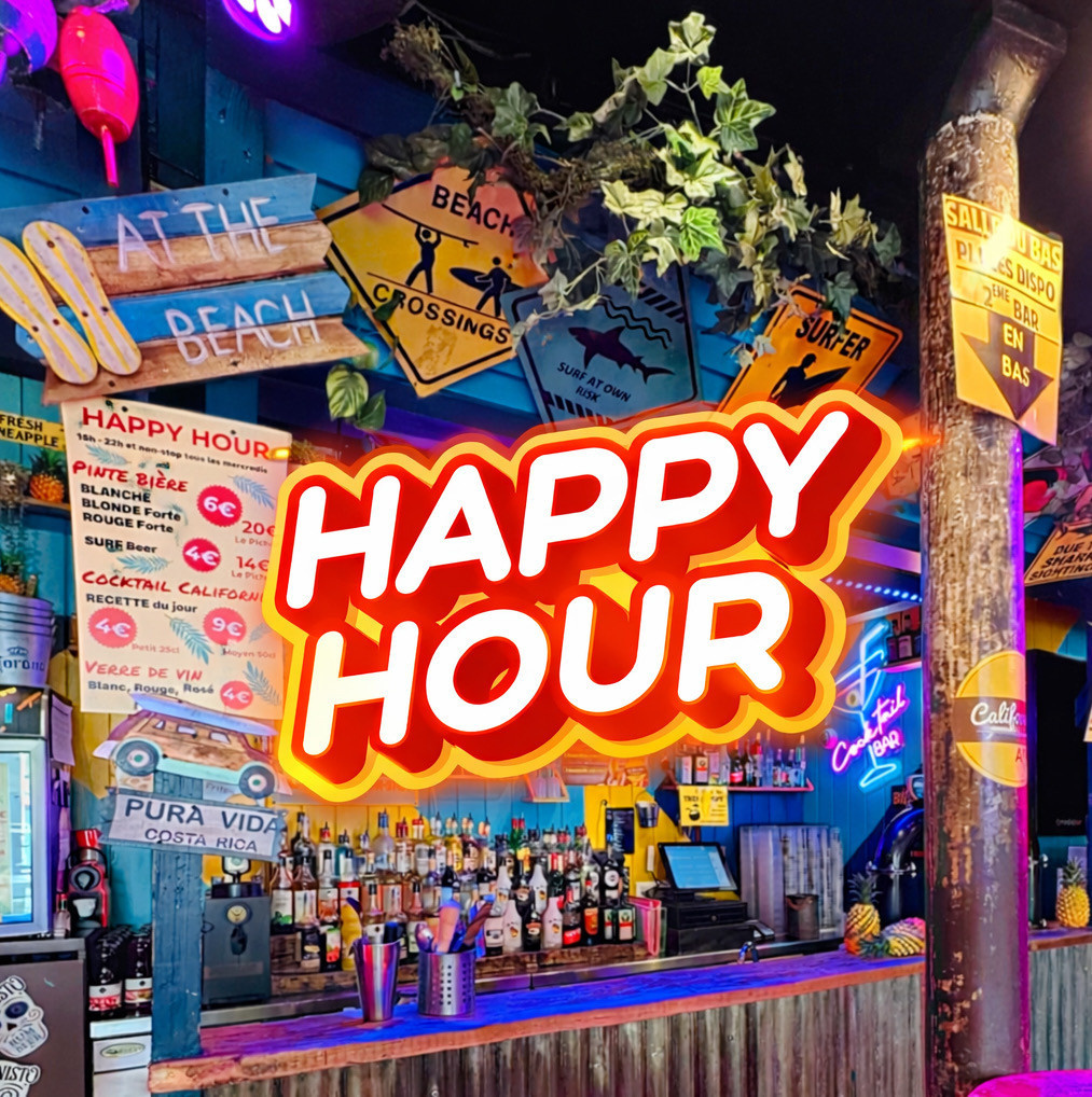 HAPPY HOUR tous les jours de 15h à 22h et non stop le jeudi