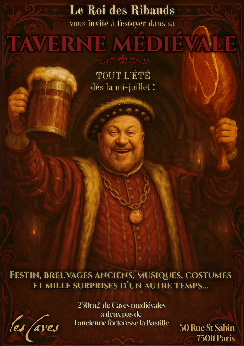 Au cœur du 11è arrondissement de Paris, La Taverne Médiévale ouvre ses portes dans un lieu chargé d’histoire : les Caves Saint-Sabin, à deux pas de la Bastille et du quartier du Temple, ancien fief des Templiers.