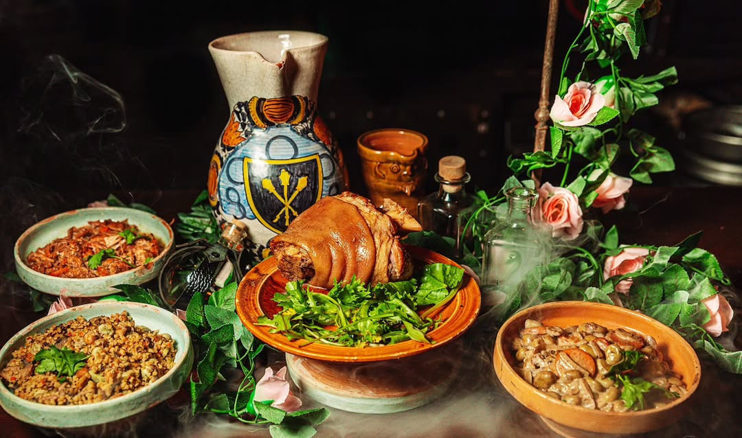 Savourez des recettes inspirées d’époque : viandes rôties, plats mijotés, douceurs d’antan… Une véritable invitation au voyage culinaire.