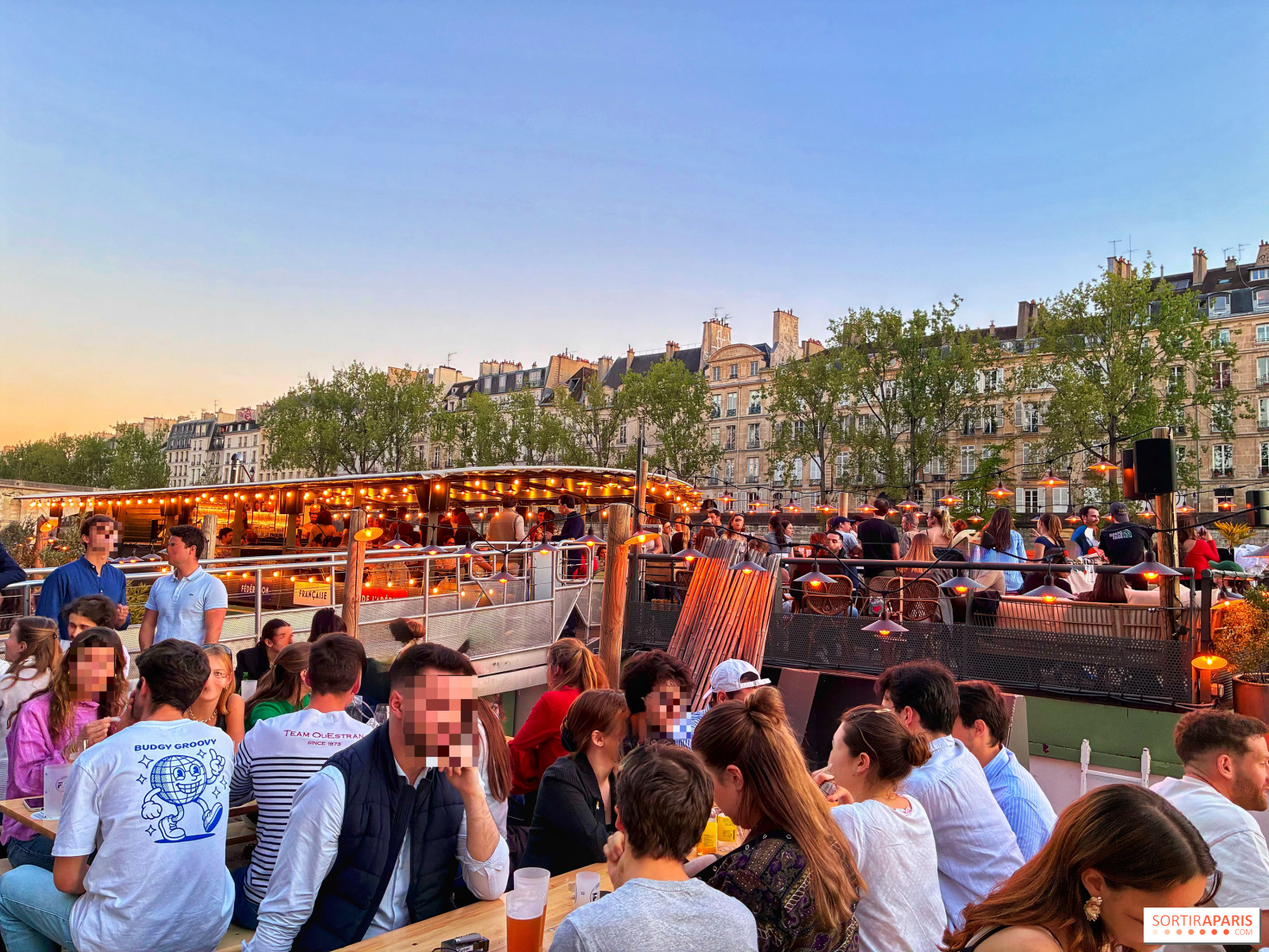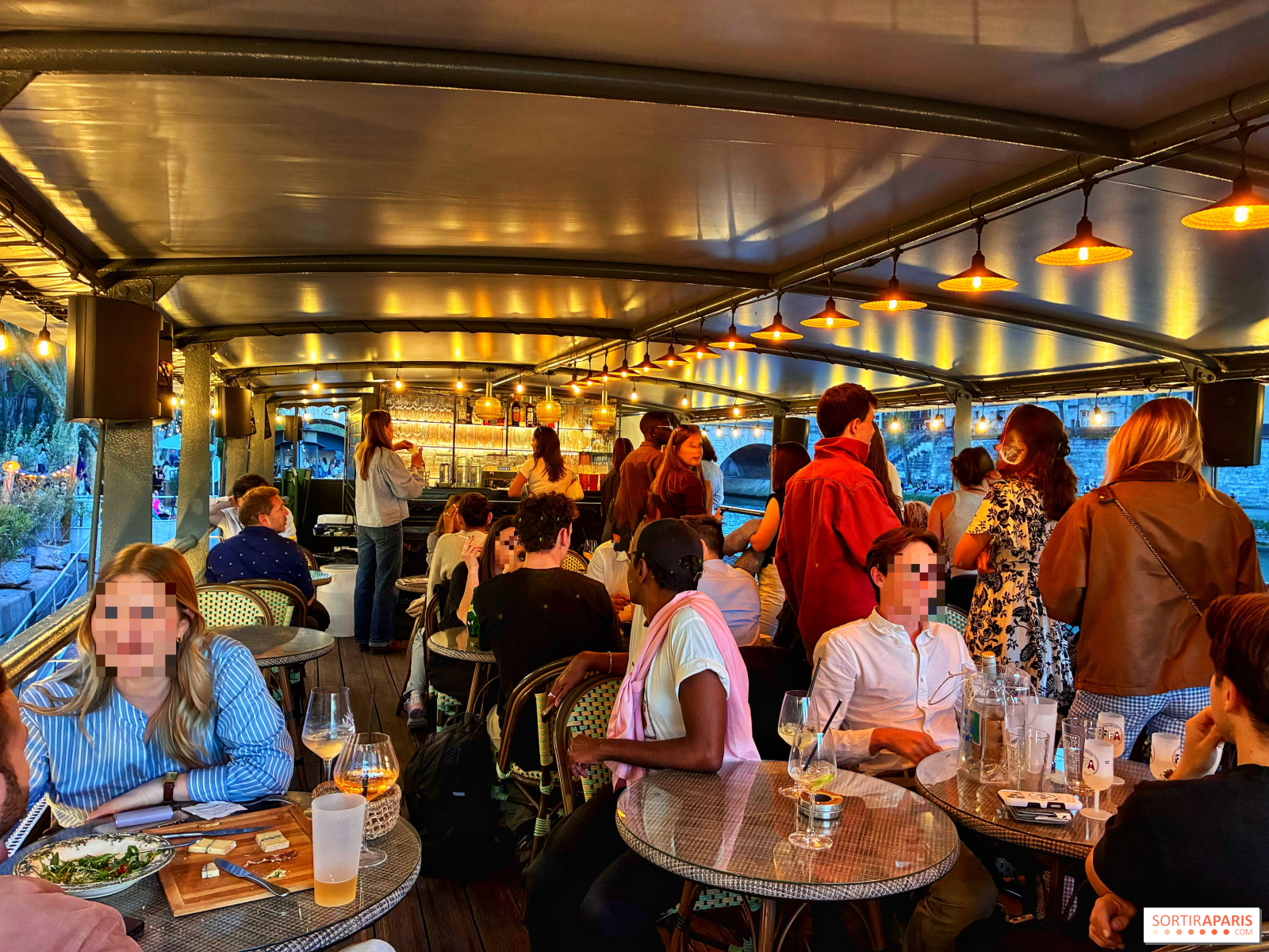 Évidemment, il vaut mieux choisir les débuts de soirée où le soleil est de la partie pour en profiter correctement sans risque de pluie. Cela a cependant son revers, le monde ! Dès que le beau temps pointe le bout de son nez, tous les Parisiens partent en quête d'une terrasse, et la péniche ne prenant pas de réservation en amont, il vaut mieux arriver tôt avant qu'elle ne soit prise d'assaut, car nous avons eu du mal à dénicher une place en arrivant à 19h.