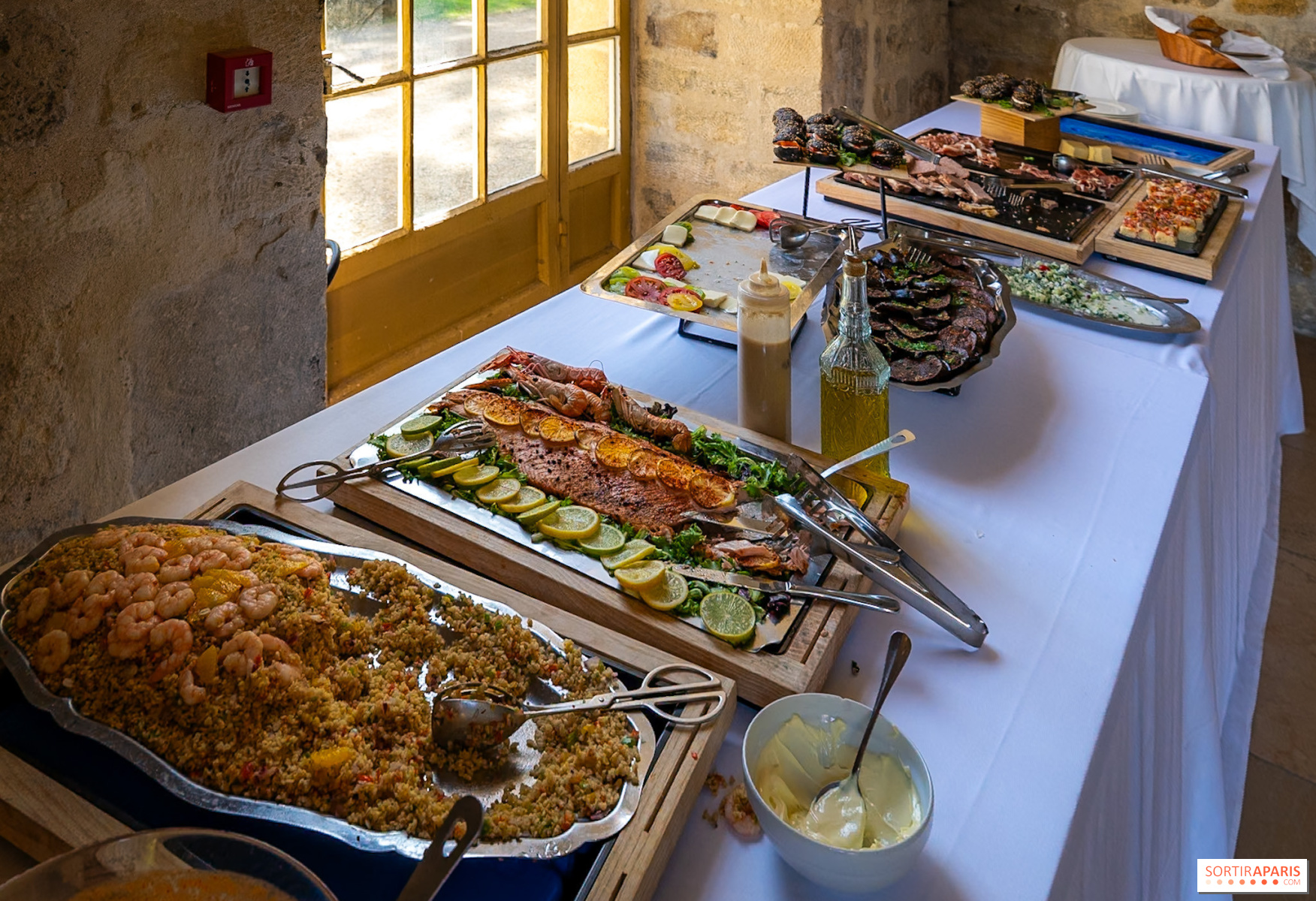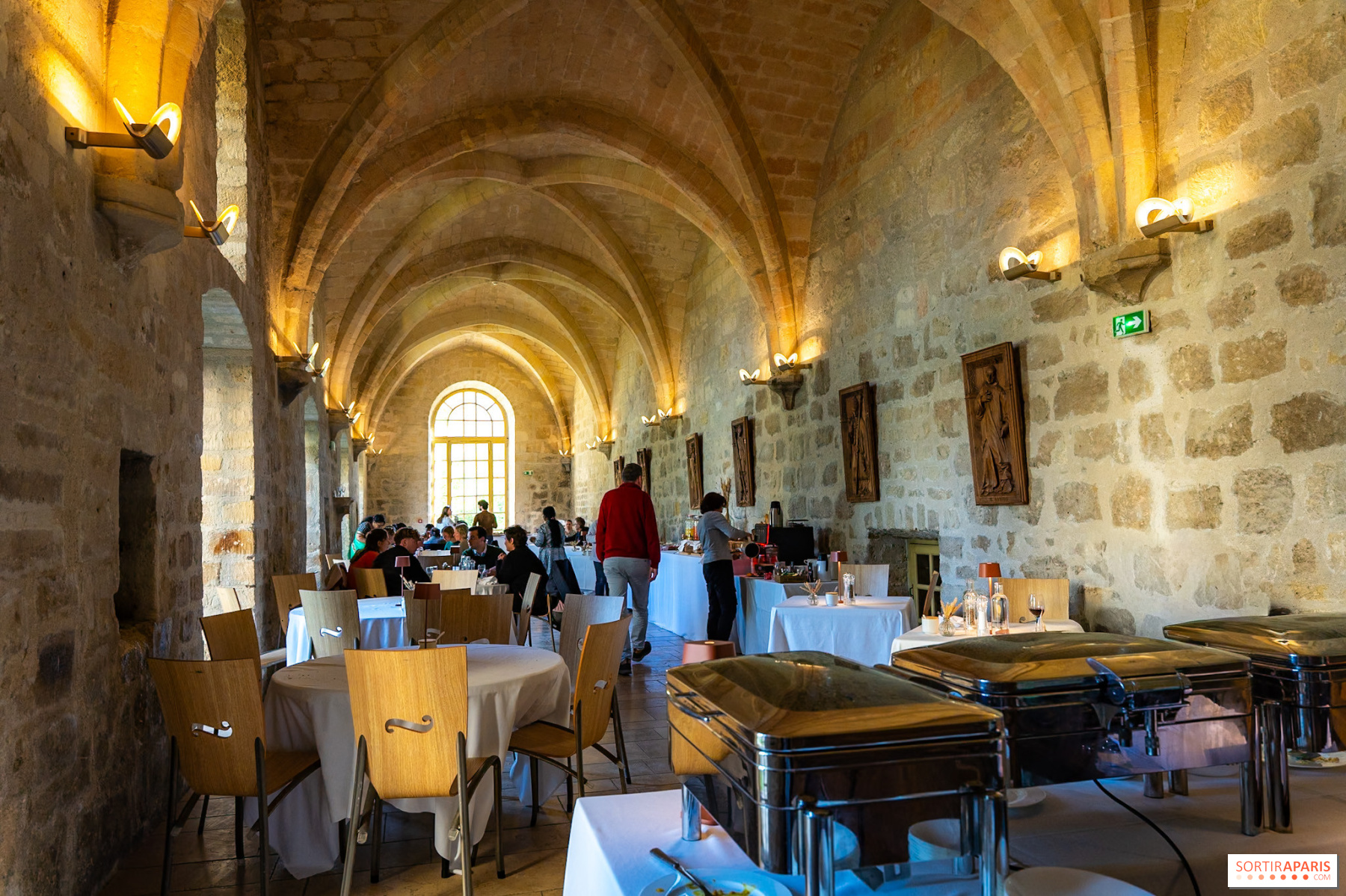 Dès notre arrivée, on est saisi par l'atmosphère particulière des lieux. Le brunch de l'Abbaye de Royaumont se déroule dans une belle salle voûtée de style gothique. À partir de 11h, on s'installe pour un déjeuner-buffet où se côtoient viennoiseries fraîches, douceurs sucrées, farandole de mets chauds et froids. La cuisine privilégie les produits locaux et de saison, avec une attention portée aux fruits et légumes issus du potager-jardin du domaine.