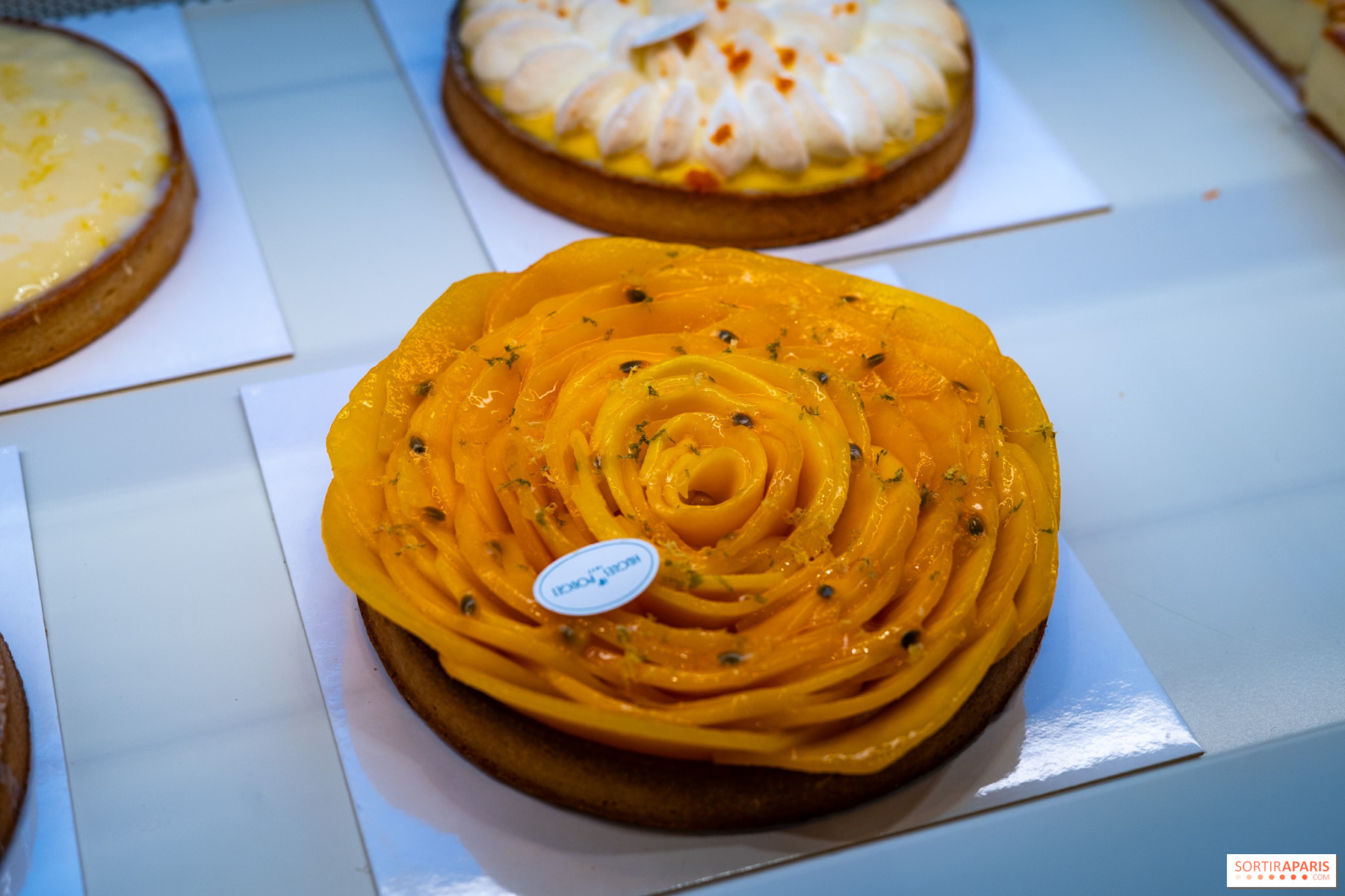 On retrouve donc le flan à 5 euros, la tarte au citron meringuée à 5,50 euros, la religieuse au café à 6,50 euros, le mille-feuille, le Paris-Brest qui arrive bientôt, la tarte à la mangue à 7,90 euros ou encore la barquette de marron façon Mont-Blanc à 7,50 euros. "Ce sont les gâteaux préférés des Français : le flan, la tarte citron, la religieuse au café", insiste le chef. On est dans la fourchette haute dans le quartier sans que ce soit excessif non plus.