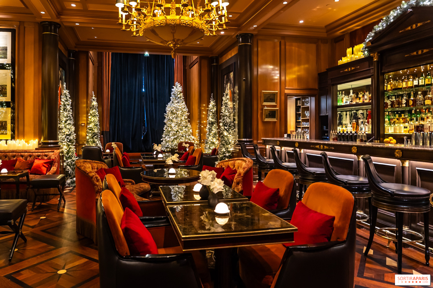 Dès 17h, le bar du Four Seasons George V se transforme en véritable cocon gourmand. On aime l'ambiance feutrée façon bar cosy aux chandelles, avec ses sapins et ses bougies qui apportent l'ambiance festive tant recherchée en cette période. Que l'on vienne pour un goûter tardif ou pour l'apéro, on se régale des créations de Michael Bartocetti, le chef pâtissier étoilé, et des tapas signature d'Alan Taudon, chef deux étoiles Michelin à L'Orangerie.