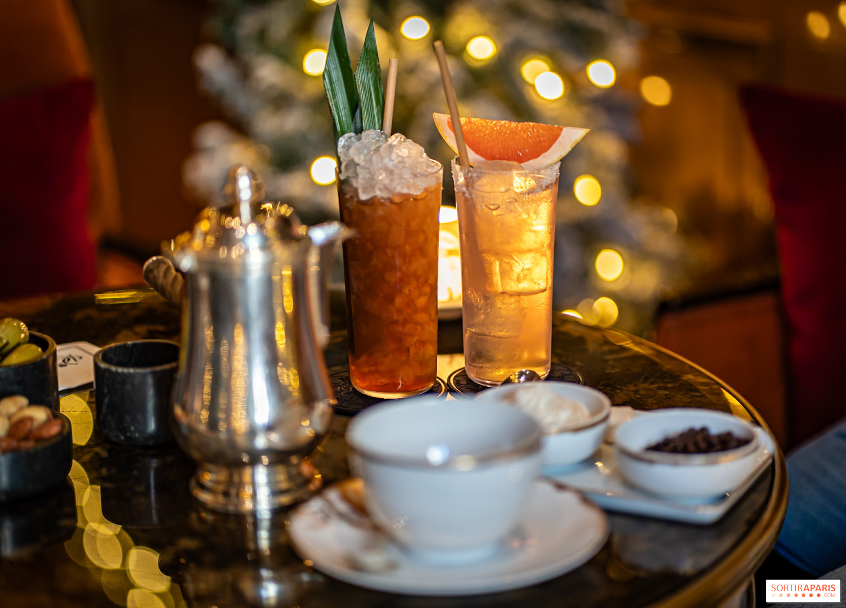 À partir de 17h, le bar prend ses quartiers avec une carte de cocktails festifs spécialement imaginée pour les fêtes. On découvre des créations originales comme l'Egg Nog façon parisienne, le Christmas Cookie Old Fashioned au whisky Michter's Rye, ou encore le Panettone Negroni qui revisite le classique italien avec une touche de brioche.