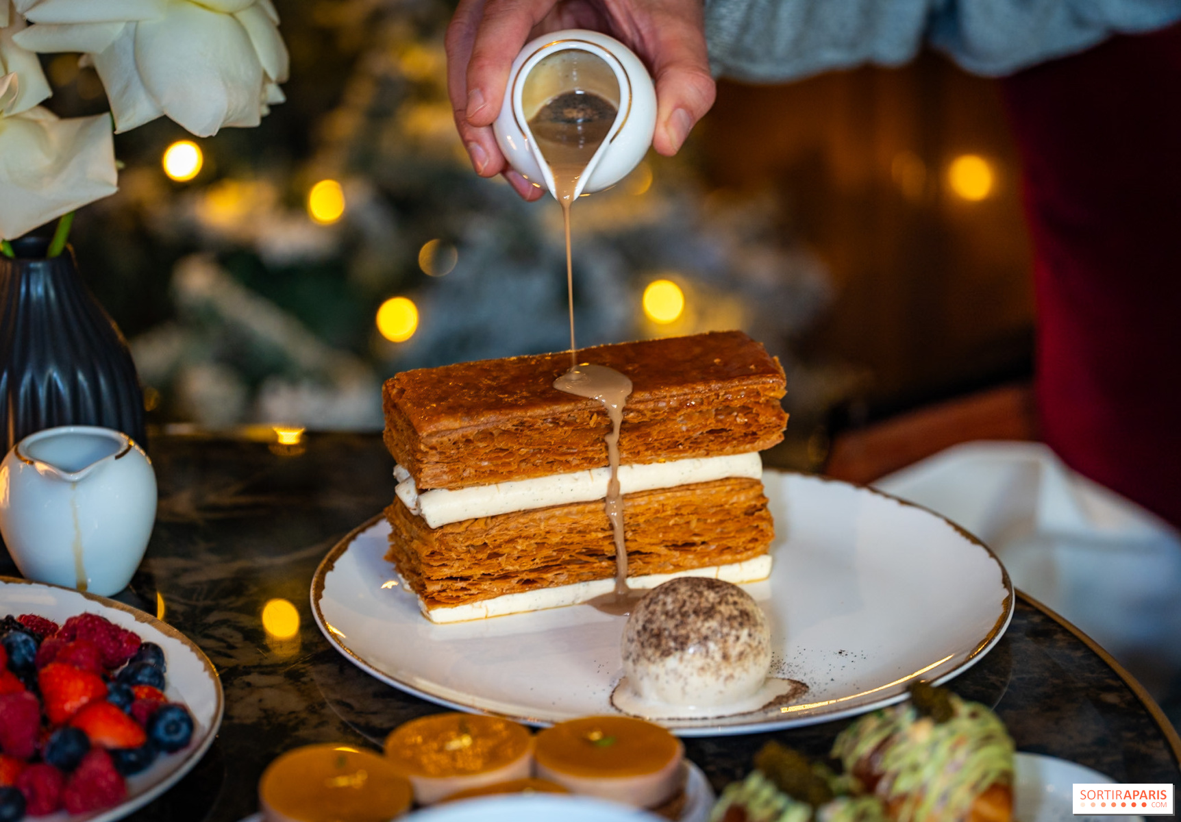 L'offre s'articule autour de deux moments gourmands. Pour le goûter, on retrouve les pâtisseries exceptionnelles de Michael Bartocetti. Le chef, originaire de Lorraine, nous fait voyager avec ses créations qui mêlent technique et émotion. Au menu, on craque pour le millefeuille croustillant à la vanille de Madagascar ou encore le pain perdu George V qui revisite le classique avec une touche palace.