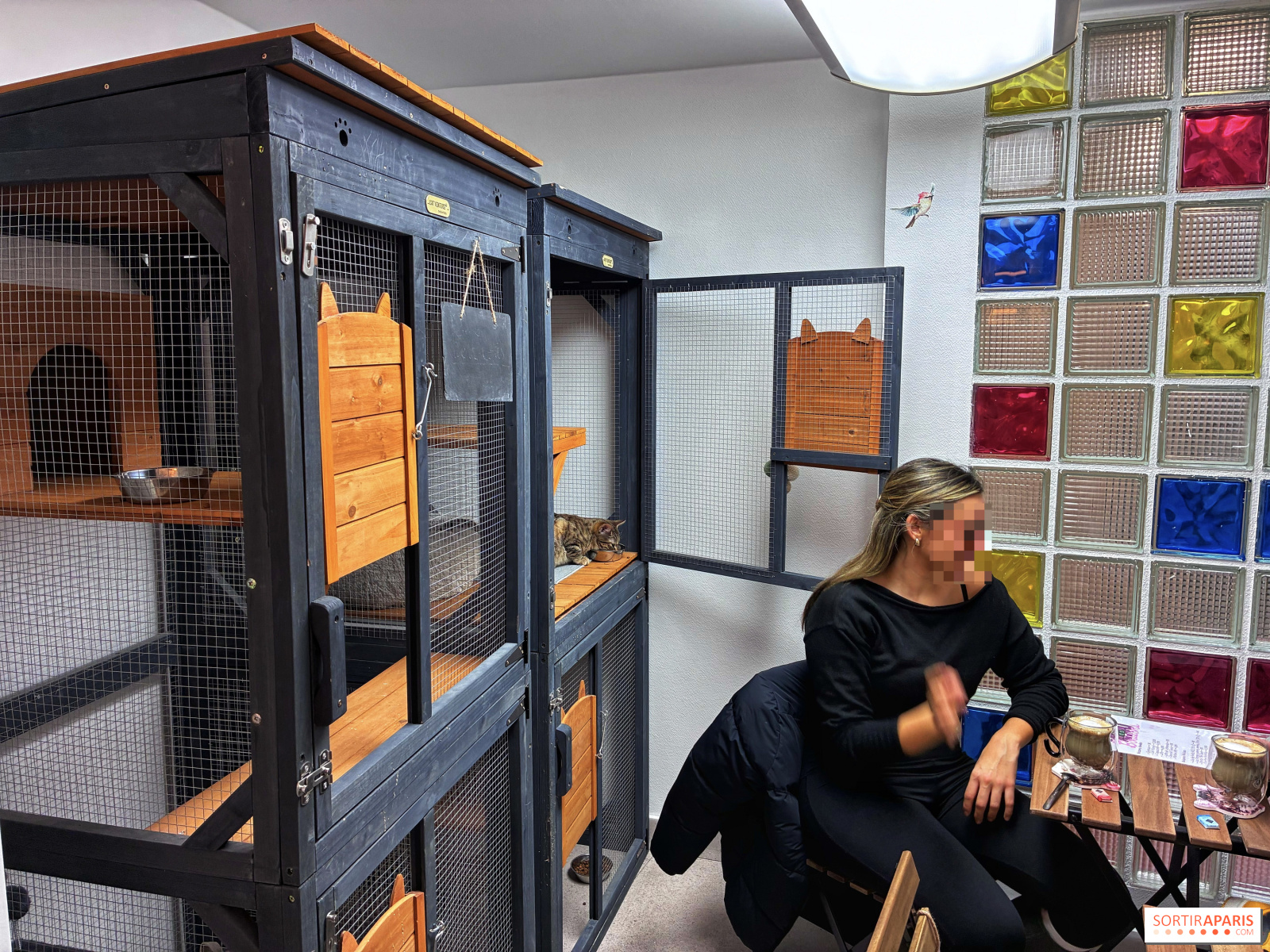 Après plus de 25 ans auprès des animaux, elle a souhaité créer son propre lieu pour offrir aux chats "un lieu d'accueil où confort, stimulation et bien-être se conjuguent". Ainsi, à l'étage, un immense espace est réservé à vos boules de poils préférées, isolé du rez-de-chaussée qui accueille le café.