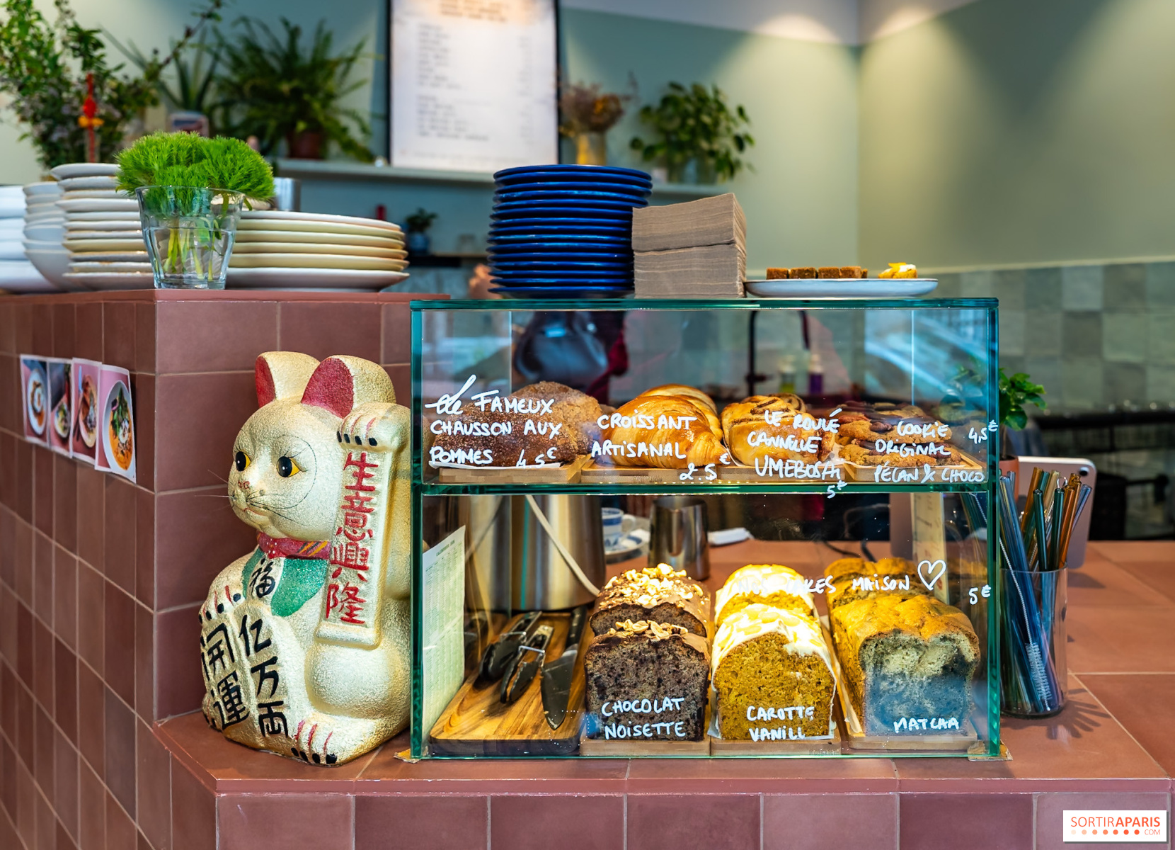 Pour les pâtisseries, les cakes sont faits maison. On retient le roulé cannelle-umeboshi aux prunes salées et le cake matcha tandis que les viennoiseries viennent de la Boulangerie Sain, adresse de référence du 10e où Yin-Line Chea a travaillé pendant plusieurs années. Un gage de qualité supplémentaire.