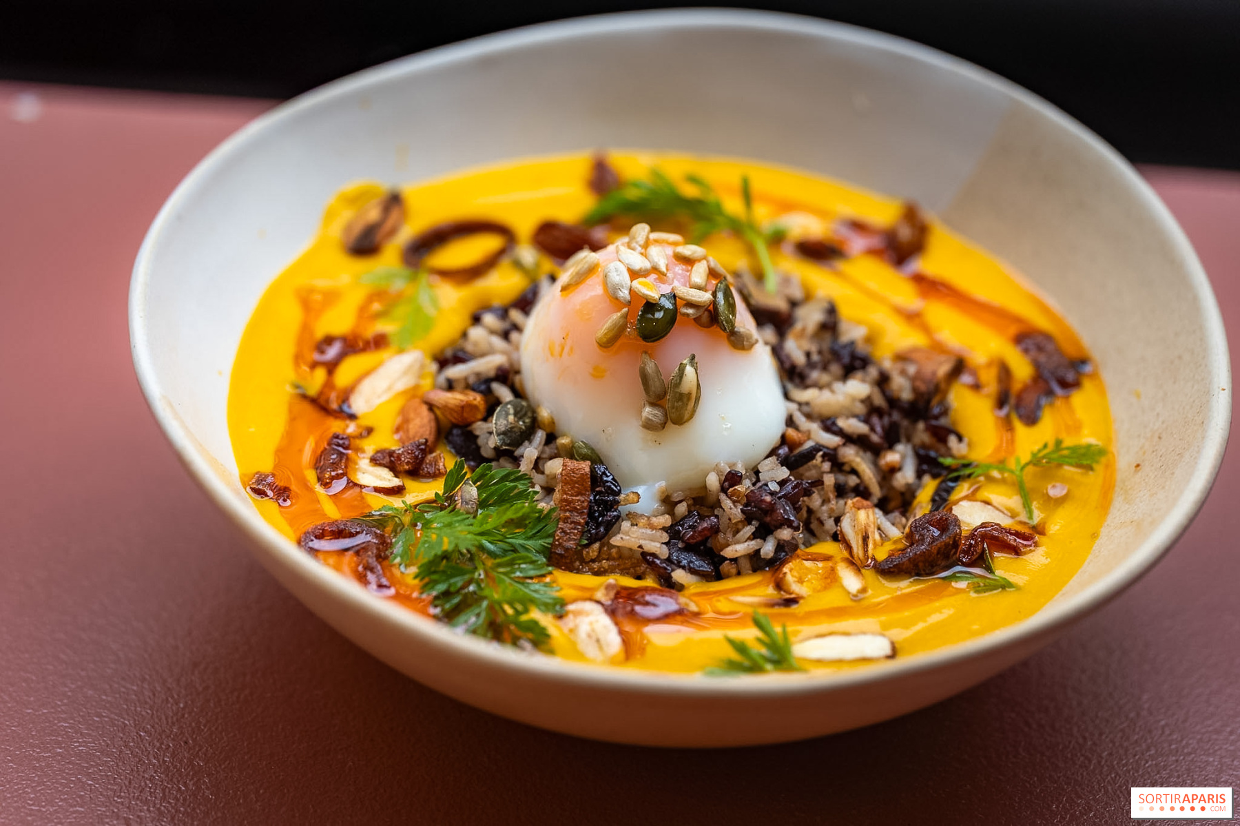 Pour notre part, on a craqué pour le bol du jour (13,50 €) : céréales chaudes, œuf parfait, velouté de saison, algues nori et condiments. Un bol complet et dépaysant, qui fait joliment la jonction entre deux univers.