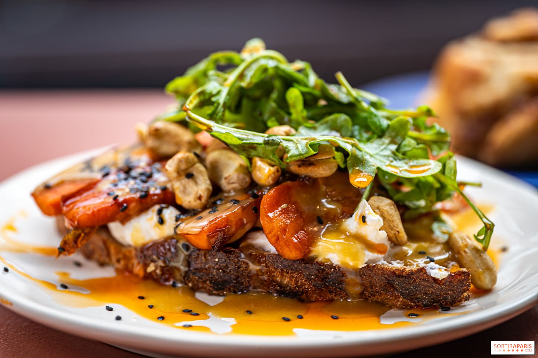 Côté sucré, la tartine salée à base de ricotta fouettée, légumes rôtis de saison et sauce tahini de noix de cajou, se veut généreuse et bien gourmande.