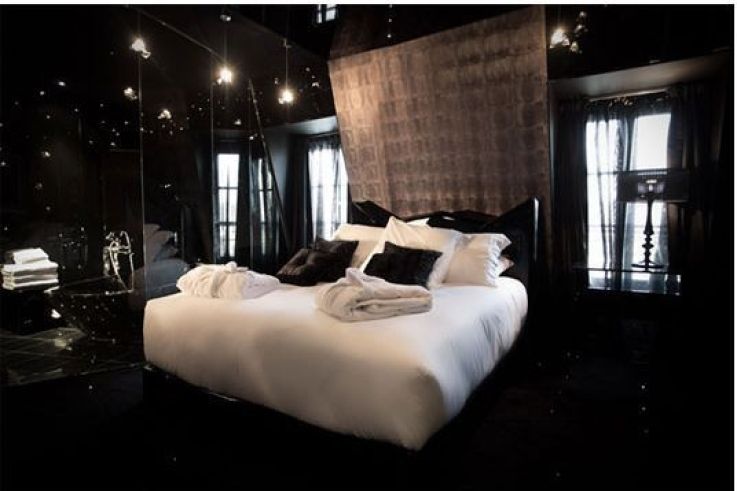 Nous avons à côté, l'Hôtel Five qui était assez novateur, pour lequel on a utilisé de la fibre optique et créé un lit en suspension avec des câbles. Au vu du succès, on a fait un prototype de l'évolution de cette chambre-là. C'est devenu une suite en lévitation dans un espace à côté du Five avec une thématique : la rencontre amoureuse. C'est le One by The Five. Là, on a compris que l'histoire était importante. Je ne vais pas vous vendre une double ou une standard... c'est plutôt quelle histoire, quelle émotion je vais vous apporter ? Je vais vous entraîner dans mon univers. J'ai donc voulu faire un hôtel dans cette thématique : la lévitation, le flottement. Le Seven a 28 chambres en lévitation et 7 suites. Pour les suites c'était l'occasion de découvrir d'autres univers. Il y en a une par niveau avec des univers fous !