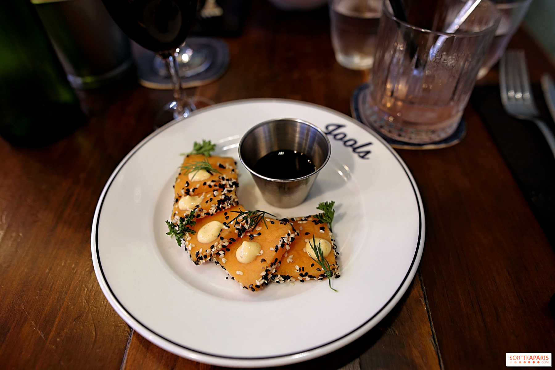 Nous prenons alors place près du bar, histoire d'être au cœur de l'action. Du côté de la carte, JOOLS propose des plats faits maison, avec des classiques revisités, réalisés à partir de produits de saison. Nous débutons la dégustation avec un savoureux tataki de patate douce, agrémenté d'une mayonnaise épicée, de sésame et de sauce soja. Surprenant, bon et efficace ! En face, on craque pour l'étonnant et ô combien délicieux fenouil rôti au piment d’Espelette, avec du sarrasin torréfié, du fromage frais et du caramel à l’orange. Gros coup de cœur pour cette entrée.