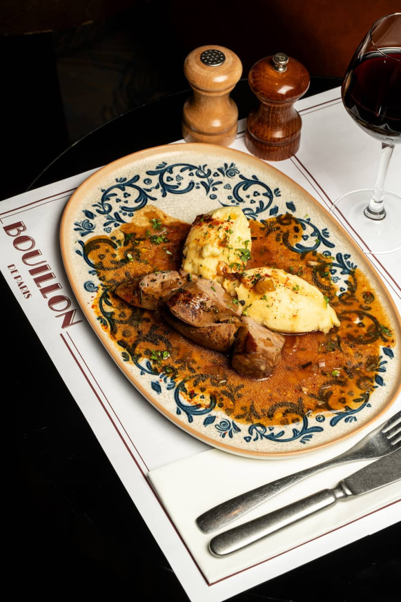 Niché au cœur de la capitale, Bouillon de Paris rend hommage aux bouillons historiques qui ont fleuri à la fin du XIXe siècle. Autrefois conçus pour nourrir rapidement et à prix modique les ouvriers de Paris, ces établissements servaient des plats copieux et populaires comme le bœuf bourguignon, les œufs mayo ou encore la mousse au chocolat. Bouillon de Paris perpétue cette tradition, en y injectant une touche de modernité et de confort : grande salle lumineuse, mobilier soigné, ambiance animée et serveurs souriants.