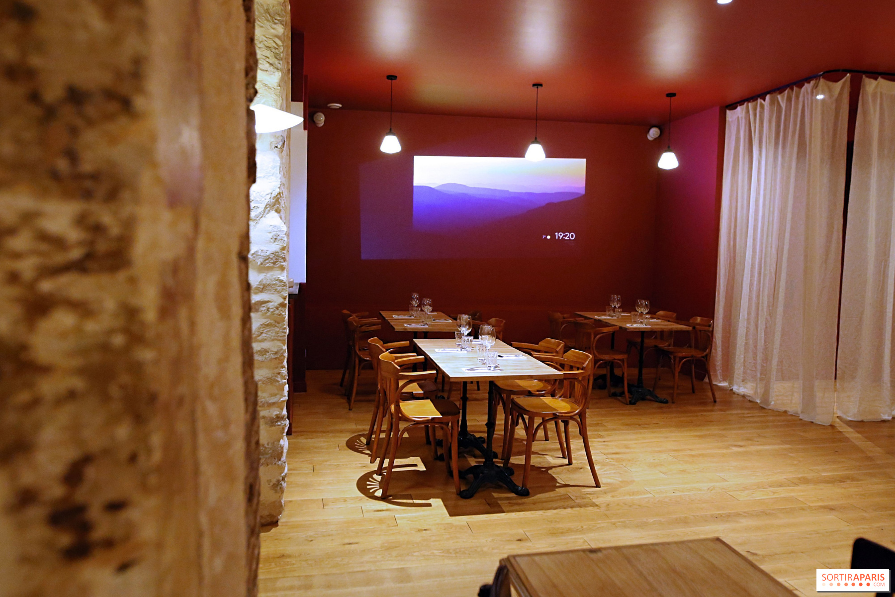 Nous choisissons donc de pousser les portes du restaurant le soir. Il est 19h10 lorsque nous arrivons devant Épopée, écrit en lettres noires sur la façade. C'est par une porte située juste sur la droite que nous pénétrons et découvrons alors l'imposante salle. Depuis l'extérieur, nous étions loin d'imaginer la belle superficie de cet espace aux lumières tamisées. La décoration est épurée, mais chaleureuse. Notre regard est rapidement attiré par le grand bar derrière lequel sont disposées de nombreuses bouteilles de vin nature. Car, si l'on vient chez Épopée pour savourer de belles assiettes, on s'y rend aussi pour découvrir de nouvelles quilles.