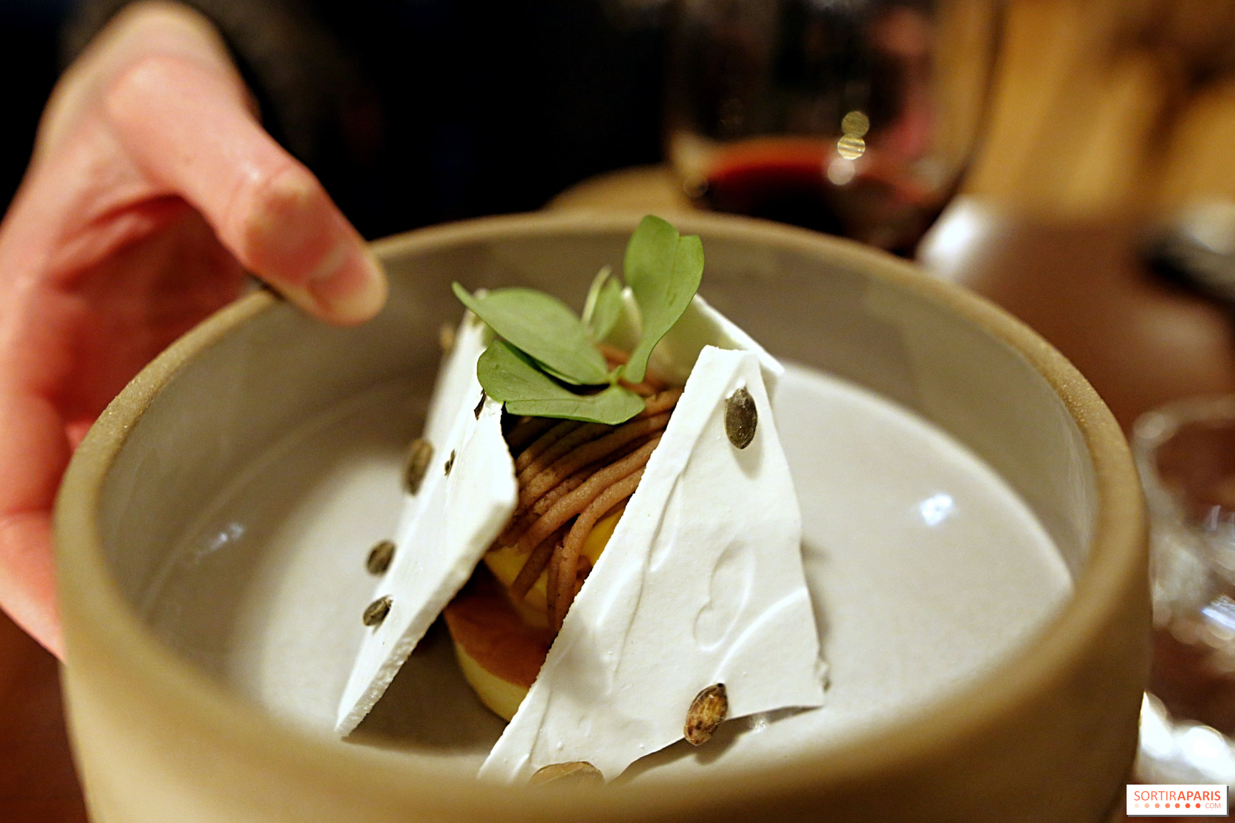 Enfin, on ne pouvait pas quitter Épopée sans goûter aux desserts, ô combien gourmands. Pour les amoureux de cacao, craquez les yeux fermés pour la mousse au chocolat ultra légère, avec sa glace au cognac et sa tuile de comté sur le dessus. Autre classique revisité et validé à 100% ce soir-là ? Le Mont Blanc, à base d'une succulent crème de marron, d'une surprenante glace à la kabocha, d'une génoise et de meringue.