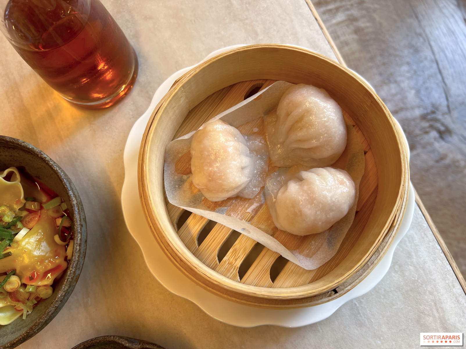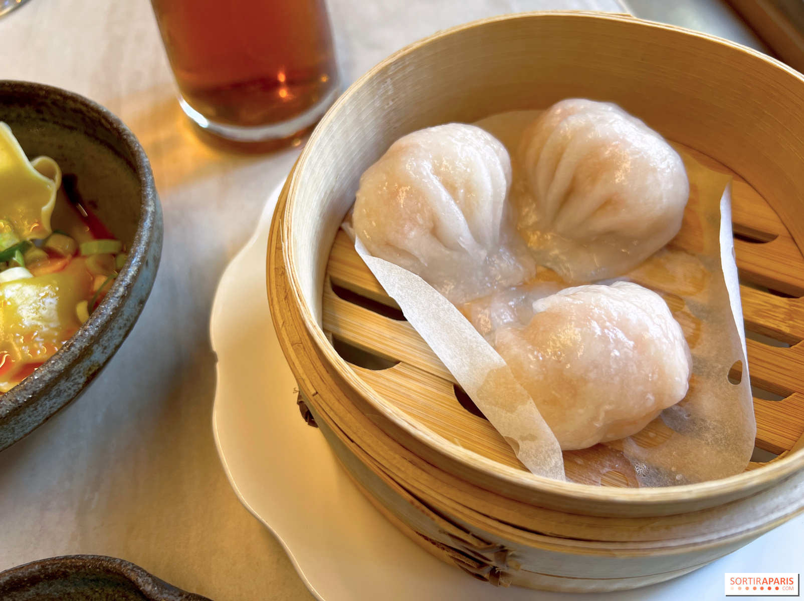 Les entrées posent le ton, avec ces wontons porc-gingembre à l’huile rouge (8€ les 4 pièces) à la farce juteuse et à la chaleur aromatique bien présente, tout comme ces Ha kao crevettes (9€ les 3 pièces) translucides, à la farce légèrement sucrée.