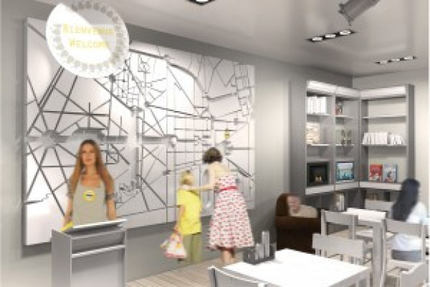 Autre élément : le mur d’images affiche en continu des images fixes ou déroulantes, sous formes de cadres photos LCD, et d’écrans plasmas présentant des films et des reportages. Enfin le restaurant propose un coin bibliothèque où le client peut retrouver une offre d’ouvrages sur le monument et sur la ville.