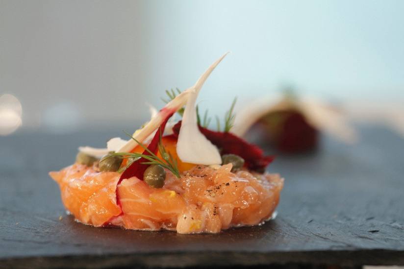 Tartare de saumon de Norvège " à la californienne ", salade mesclun composée bio et brunoise d'avocat, filet de saumon de Norvège grillé et petits légumes à la plancha... et pourquoi pas un burger norvégien pendant qu'on y est ? Et bien oui pourquoi pas ?! Cela fleure bon l'été et vous l'aurez compris, le poisson frais.