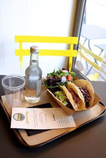 Dans l’assiette, une formule de trois tacos est proposée, accompagnés de salade ou de pommes de terre selon votre envie. On a adoré l’écrasé d’avocat accompagné de mangue et d’une vinaigrette passion-espelette, le tacos façon salade César et celui au tian de légumes au pesto. Mais pour vous ce sera la surprise, puisque le menu change chaque semaine !