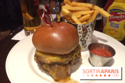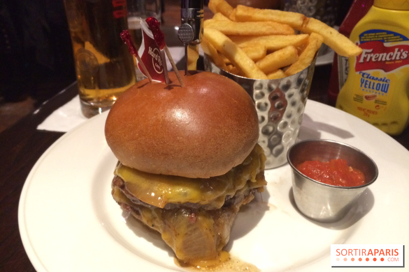 Dans notre assiette, un burger composé de deux steaks hachés de bœuf assaisonné recouverts de Cheddar fondu, d’oignons sautés à la bière et de mesclun. Le tout servi sur des buns briochés et toastés. On le déguste avec des frites réalisées dans les cuisines du Hard Rock Cafe Paris, croustillantes à souhait, à partir de pommes de terre Yukon. On les trempe dans un savoureux ketchup maison à la bière et au bacon ! Pour rincer le tout, une Heineken est de mise. Le Rebel Legendary est le premier d’une série de burgers créés par Hard Rock Cafe tout au long de l’année qui seront proposés en accord met et bière.