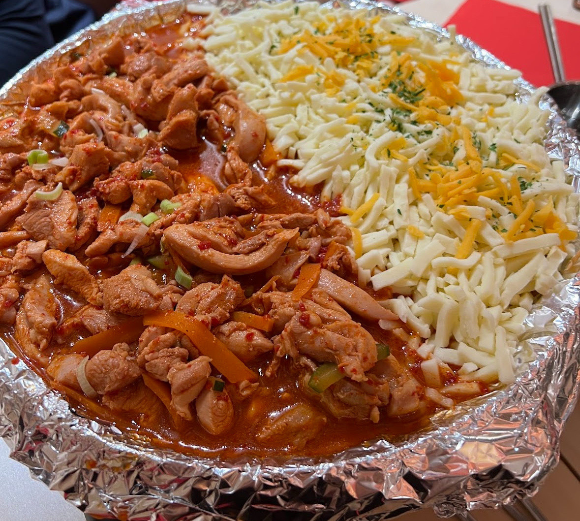 Le menu, pensé pour séduire tous les amateurs de plats généreux, met à l’honneur des spécialités typiques revisitées avec une touche gourmande. Au programme : korean fried chicken, cheese dakgalbi, mandu ou encore cheese rabokki. Chaque bouchée est une explosion de saveurs, entre tradition et modernité.