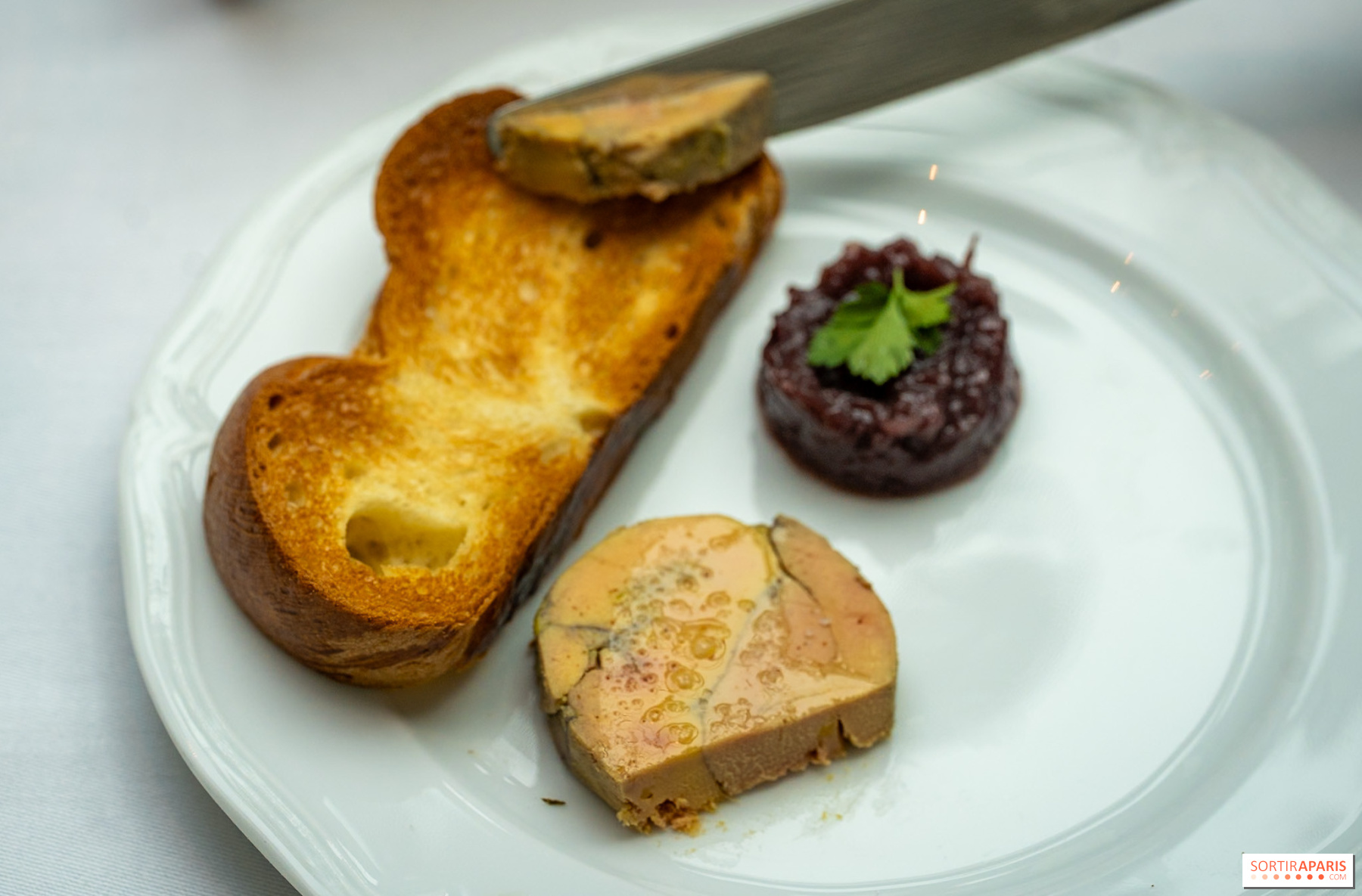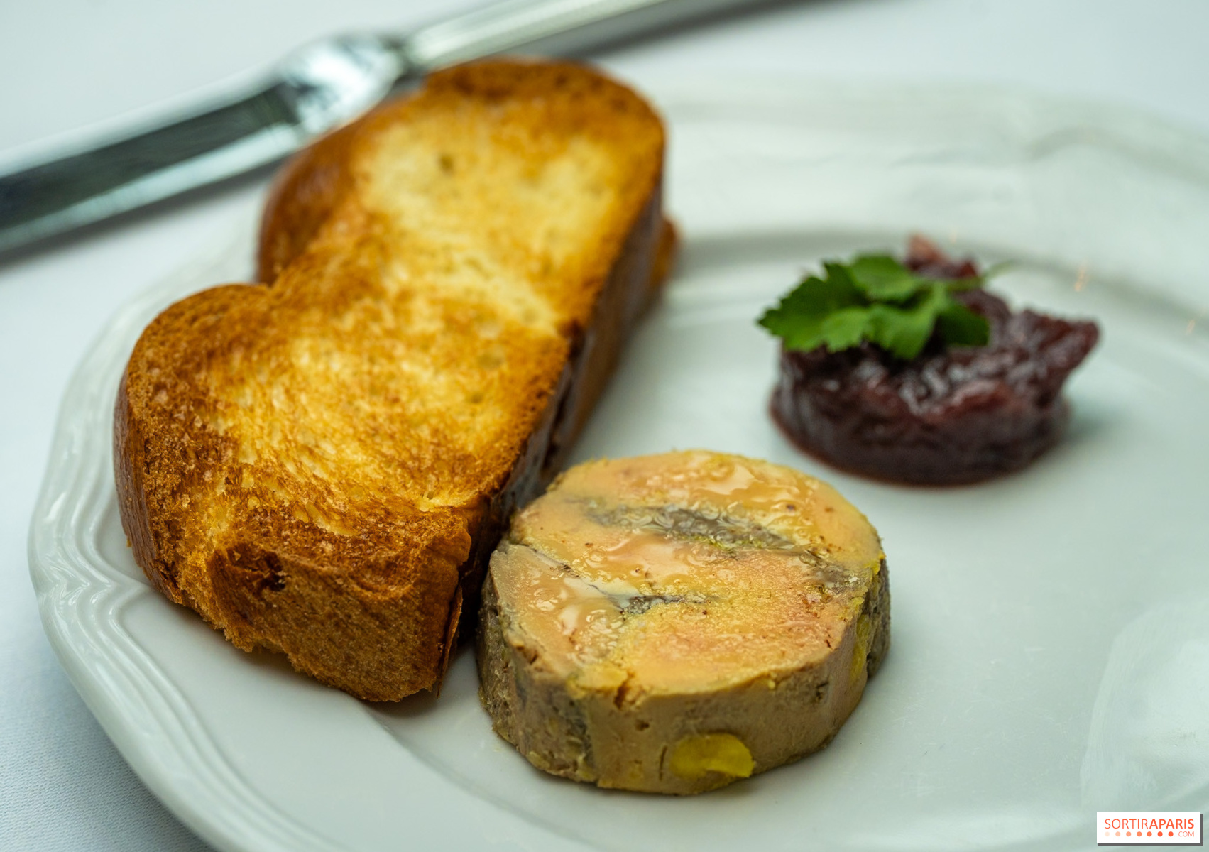 Côté menu des fêtes, on reste dans le classique avec un foie gras de canard au naturel, accompagné d'un confit d'oignons de Roscoff au porto et d'une brioche tiède. C'est bien exécuté, les produits sont de qualité, même si on ne réinvente rien.