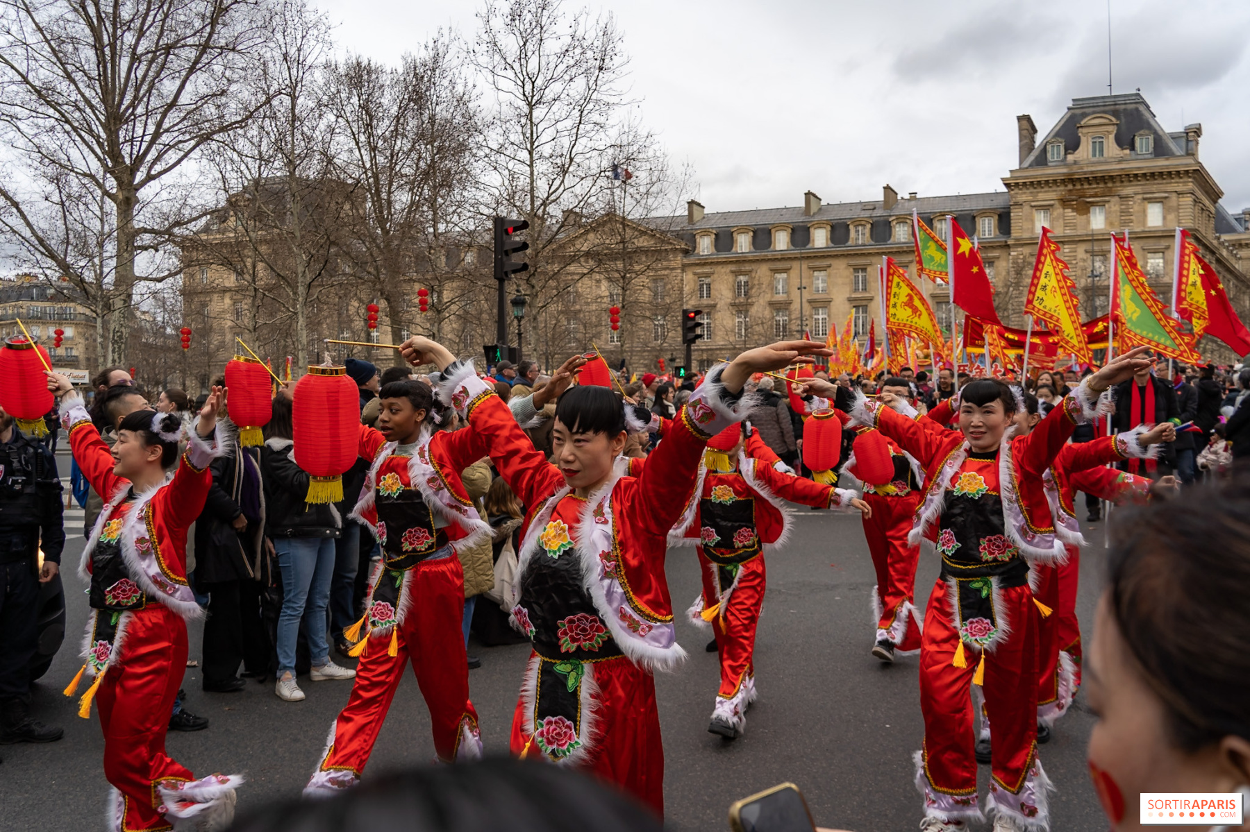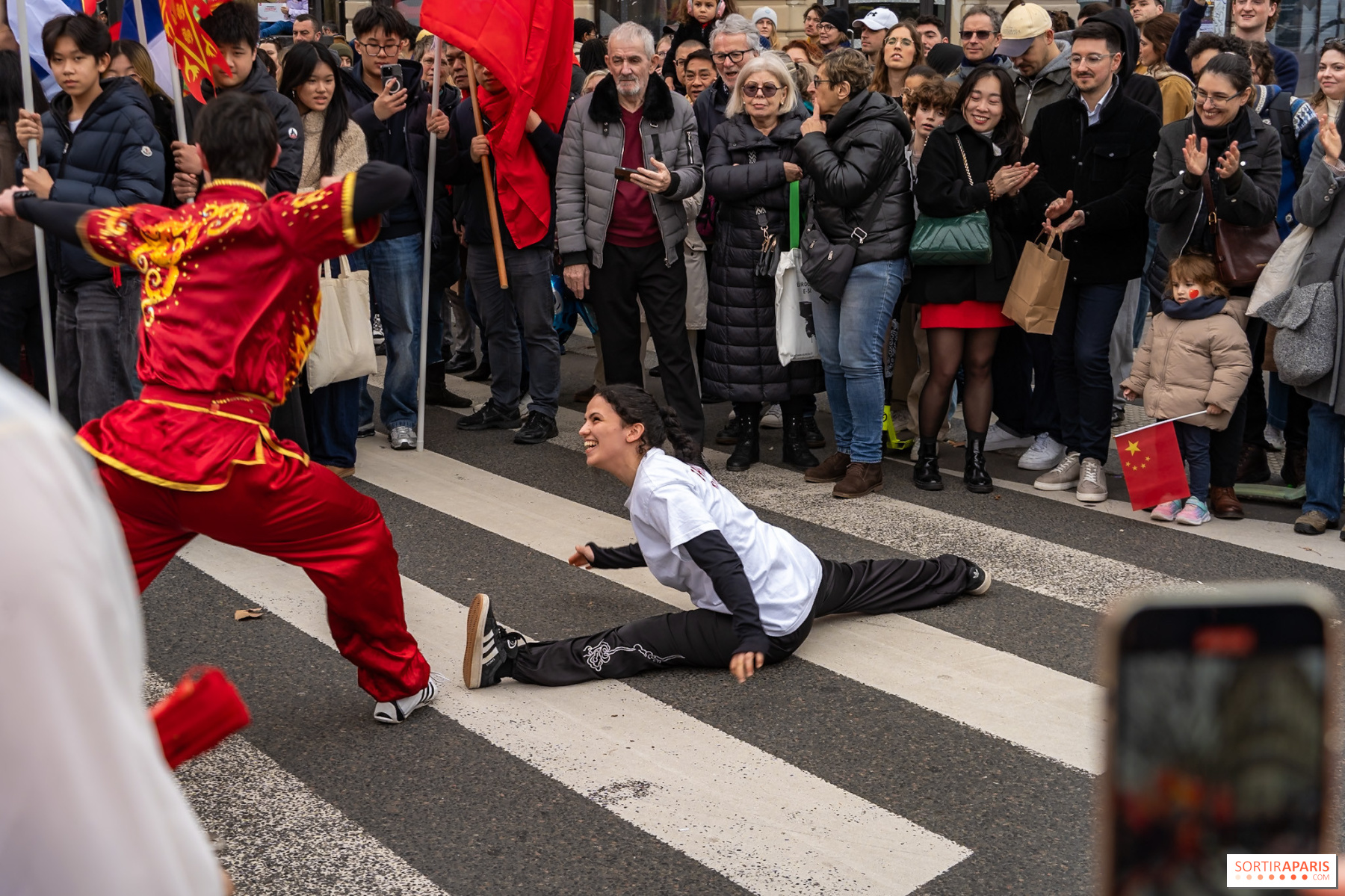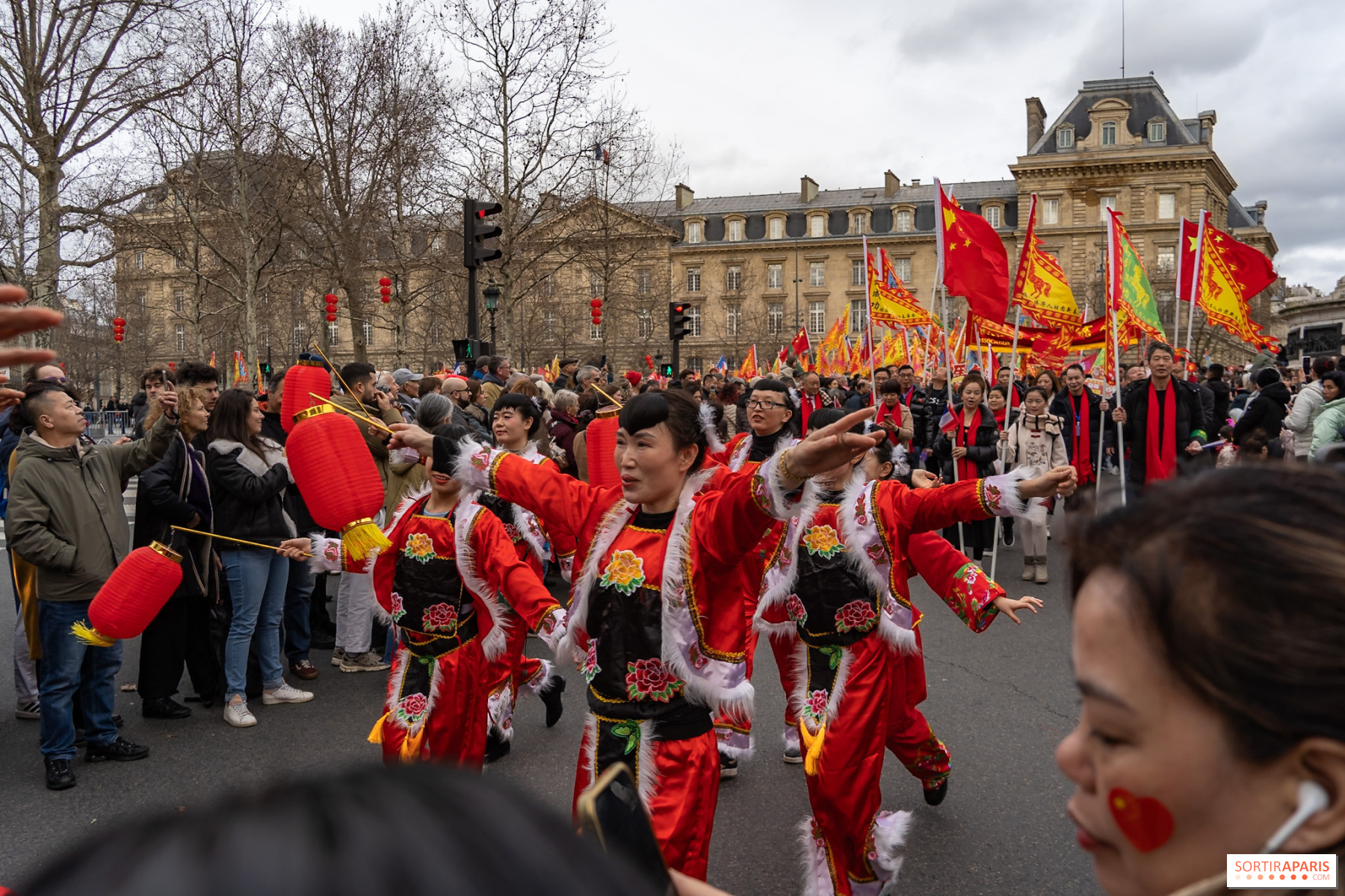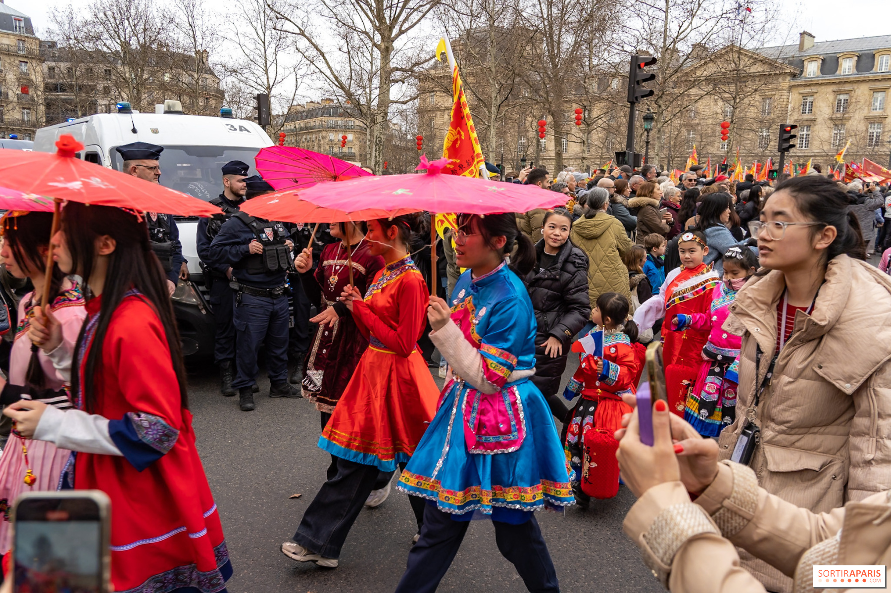 A várva várt délutáni eseményen, a kostümfelvonulás több mint 50 szervezetet tömörített össze, lenyűgöző felvonuláson keresztül mutatva be díszes felvonuló kocsikat, hagyományos öltözékeket és modernebb kreációkat. Ez egy remek példája a párizsi kínai-francia közösség sokszínűségének és életerejének. A hímzett ruhák és az ünnepi kiegészítők között minden szervezet saját színével gazdagította a látványt. Az egész hangulat baráti, családias volt, ahol babakocsik és mobiltelefonok versenyeztek a legjobb pozícióért.