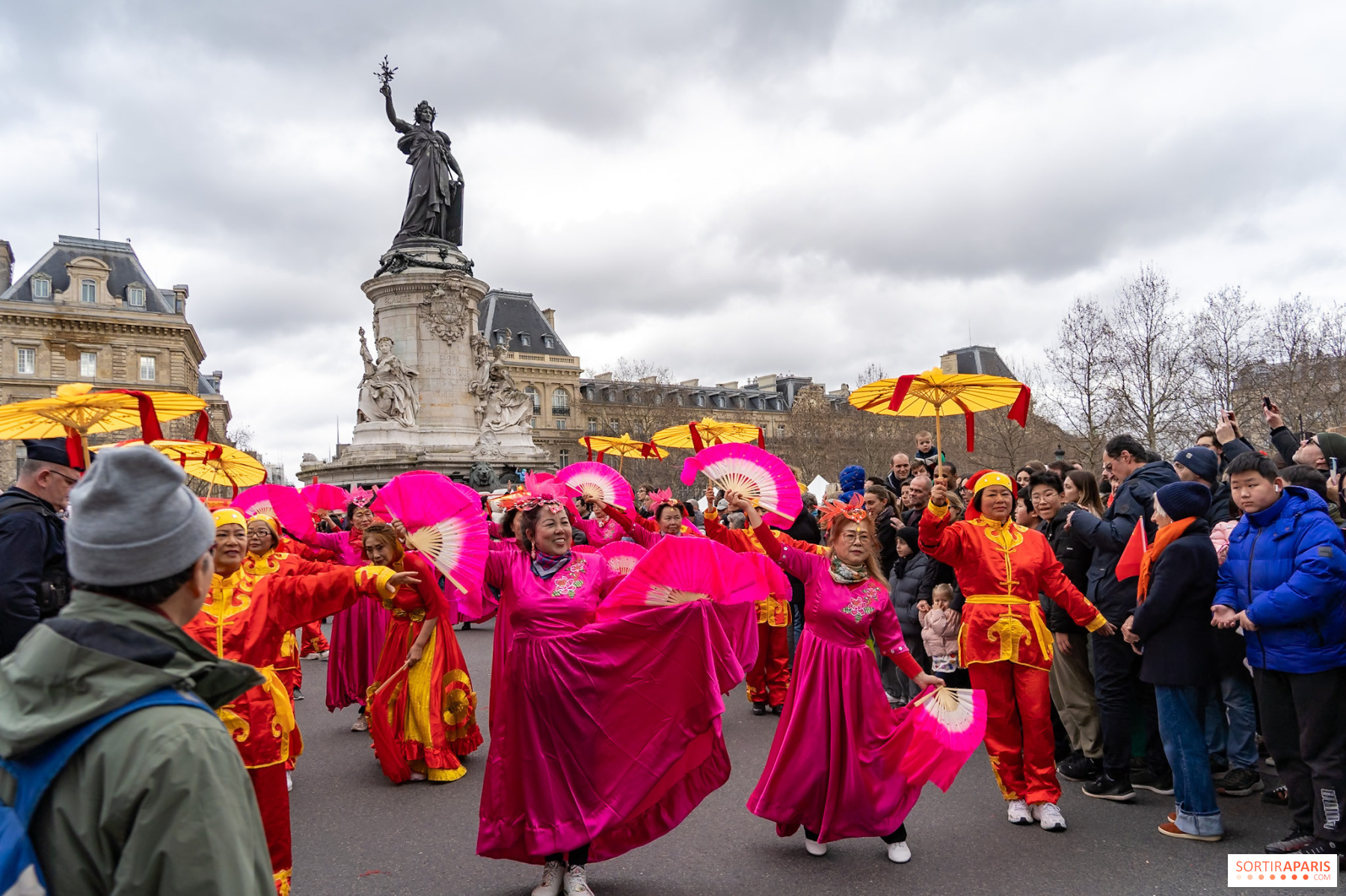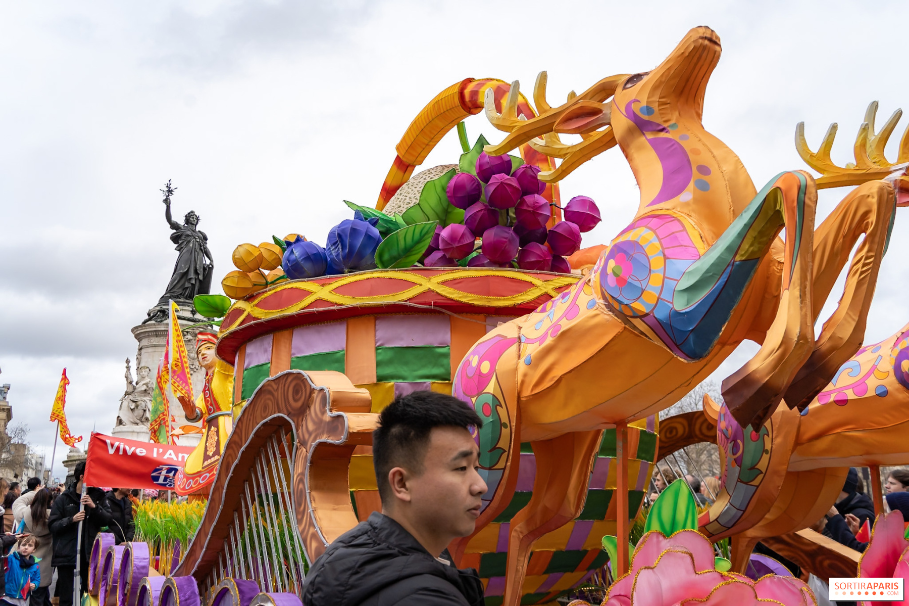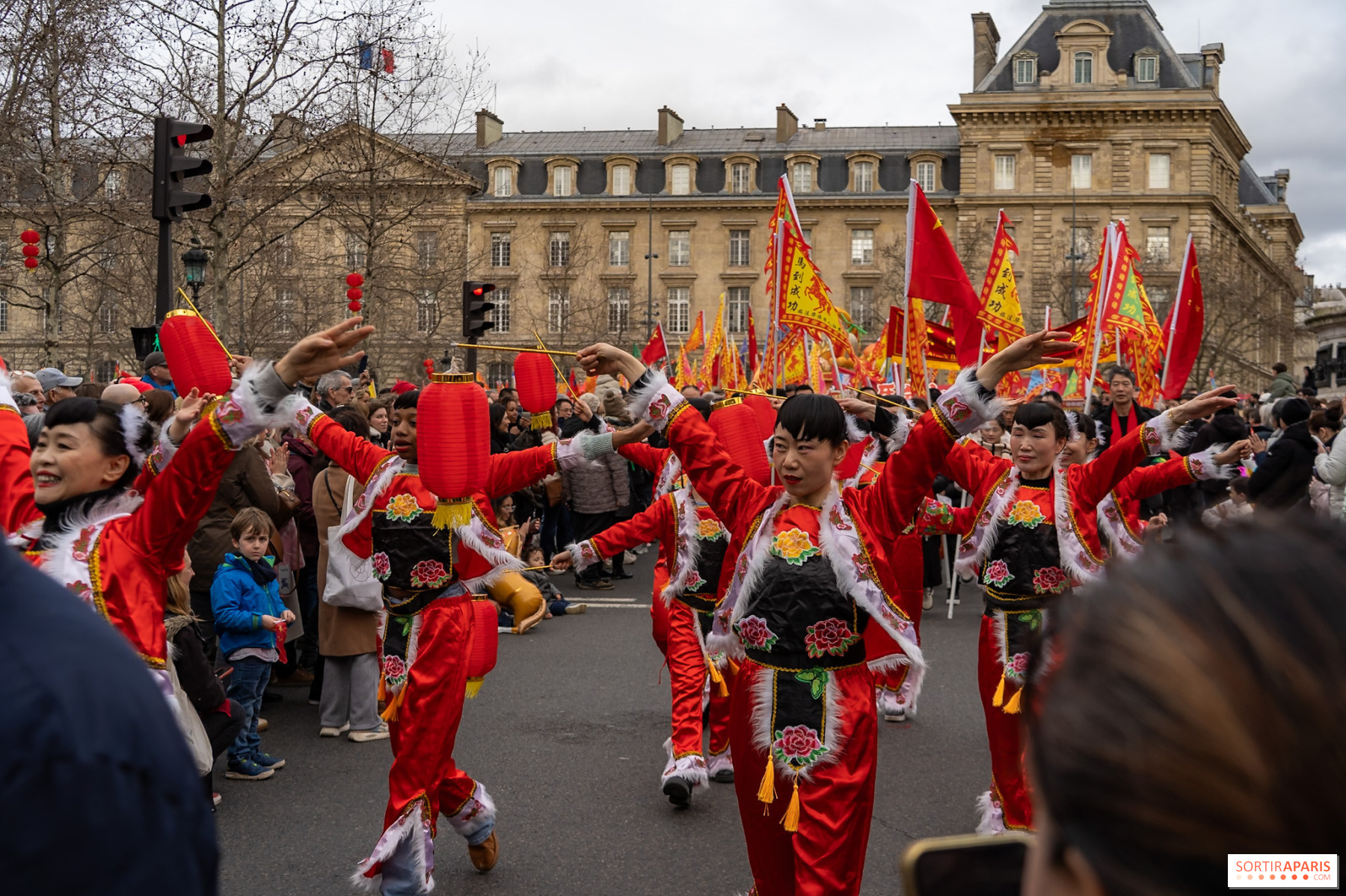 A várva várt délutáni eseményen, a kostümfelvonulás több mint 50 szervezetet tömörített össze, lenyűgöző felvonuláson keresztül mutatva be díszes felvonuló kocsikat, hagyományos öltözékeket és modernebb kreációkat. Ez egy remek példája a párizsi kínai-francia közösség sokszínűségének és életerejének. A hímzett ruhák és az ünnepi kiegészítők között minden szervezet saját színével gazdagította a látványt. Az egész hangulat baráti, családias volt, ahol babakocsik és mobiltelefonok versenyeztek a legjobb pozícióért.
