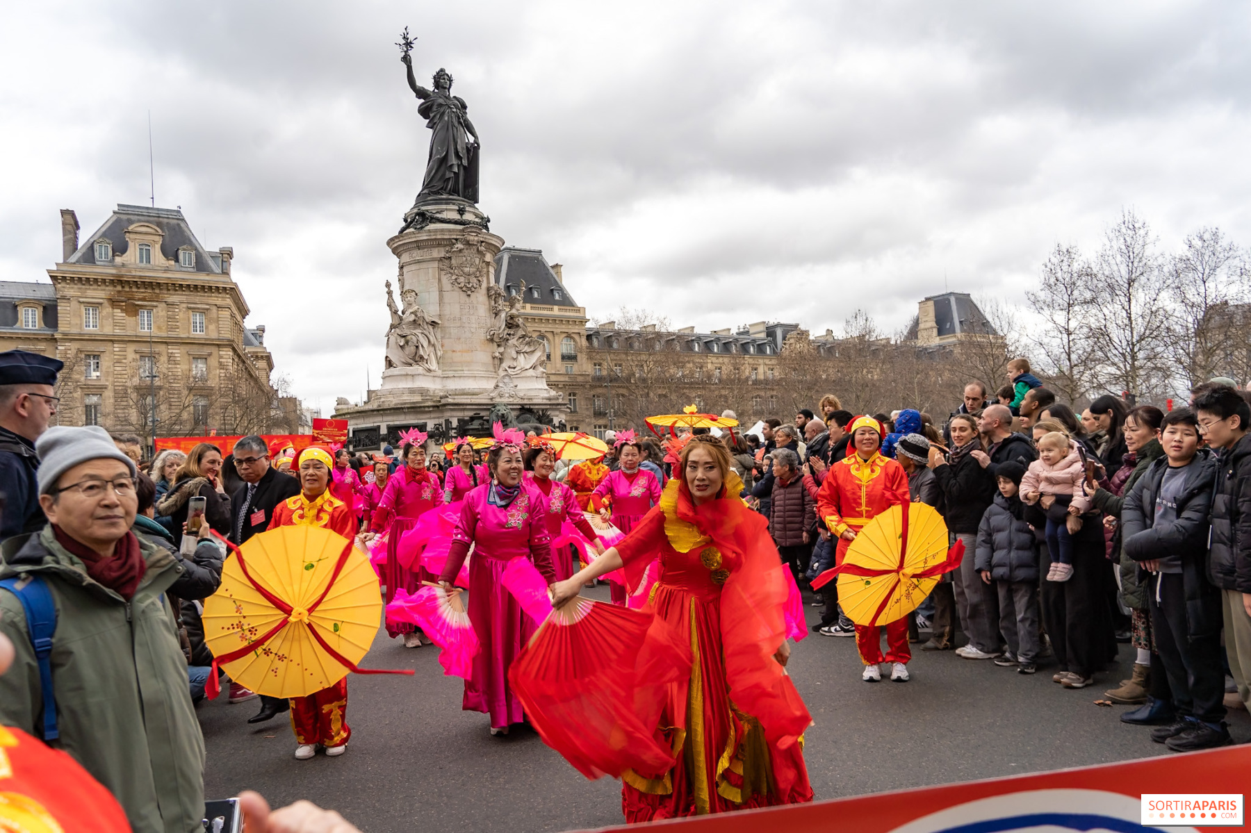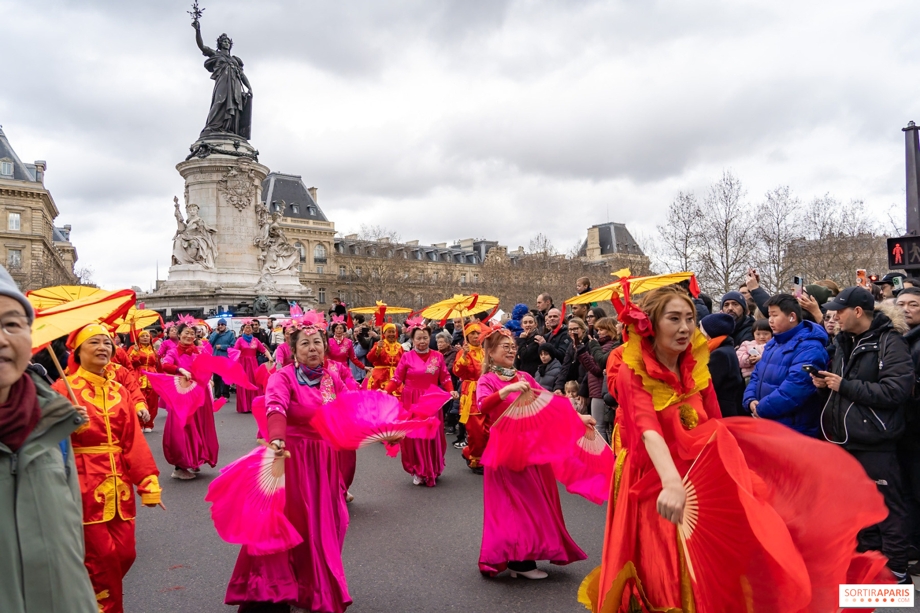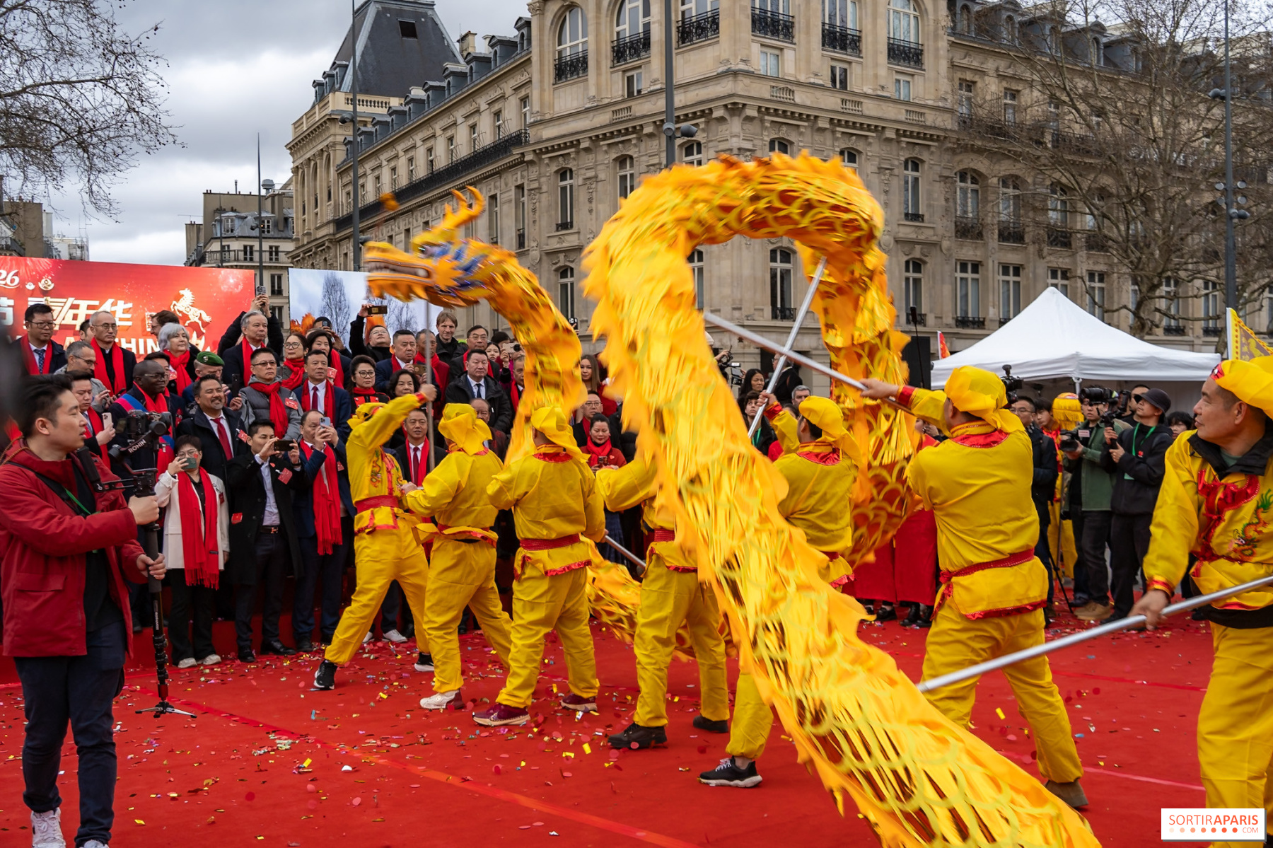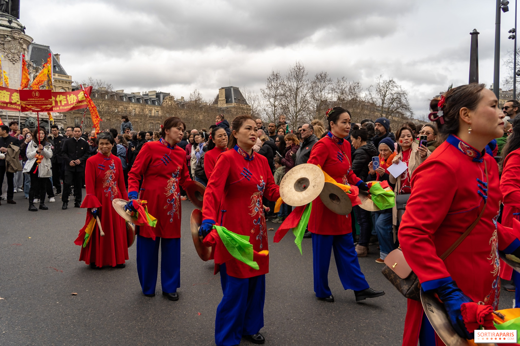 A várva várt délutáni eseményen, a kostümfelvonulás több mint 50 szervezetet tömörített össze, lenyűgöző felvonuláson keresztül mutatva be díszes felvonuló kocsikat, hagyományos öltözékeket és modernebb kreációkat. Ez egy remek példája a párizsi kínai-francia közösség sokszínűségének és életerejének. A hímzett ruhák és az ünnepi kiegészítők között minden szervezet saját színével gazdagította a látványt. Az egész hangulat baráti, családias volt, ahol babakocsik és mobiltelefonok versenyeztek a legjobb pozícióért.