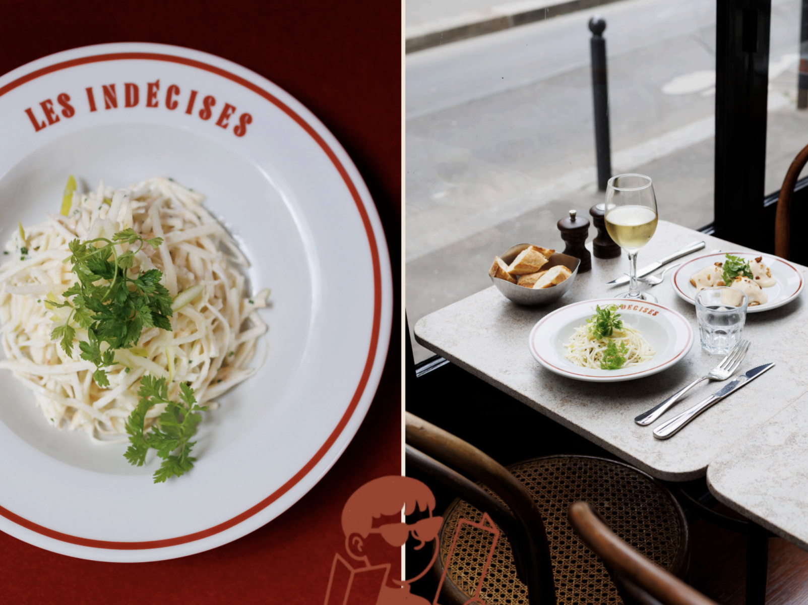 A reggel 8-tól délután 2 óráignon-stop nyitva tartó Les Indécises a hagyományos reggelitől (kávé-croissant, pirítós, főtt tojás, tojás Benedict) a vacsoráig (nem kell többé kistányérokat osztani, fúú!), nem feledkezve meg az ebédről, amely egy kissé elfeledett hagyományt (a heti menüt), valamint az aperitifről( felvágott- éssajttálak, koktélok és borok).