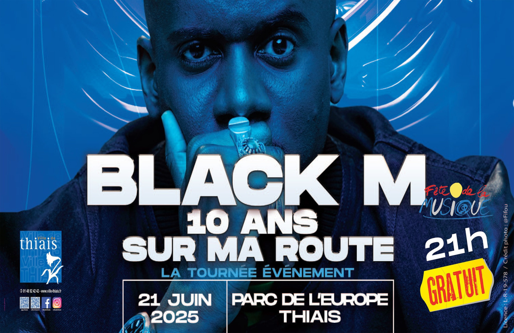 Tandai kalender Anda! Black M akan tampil di panggung Théâtre de Verdure di Parc de l'Europe pada hari Sabtu, 21 Juni 2025 untuk sebuah konser terbuka gratis!