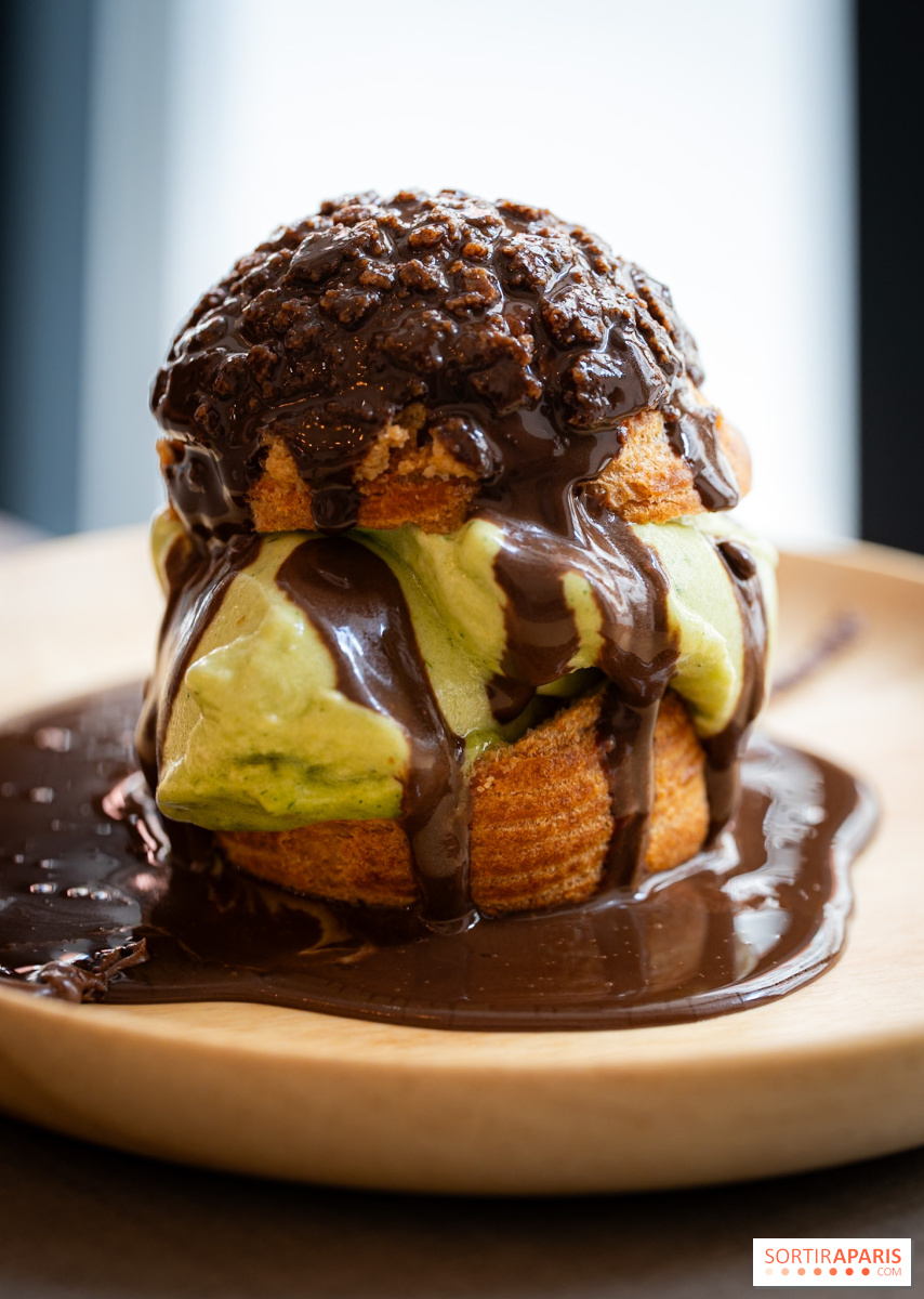 Kami menutupnya dengan profiterole de l'Audass (€12), dengan kue renyah dan es krim yang tajam, dan permen kapas yang menakjubkan dengan yoghurt dan buah zaitun hitam. Harus diakui, ini adalah kreasi yang unik. Bayangkan memiliki permen kapas asli yang memiliki rasa yoghurt danbuah zaitun hitamsaat Anda memakannya. Kombinasi yang sangat mengejutkan, namun sangat cocok dipadukan.