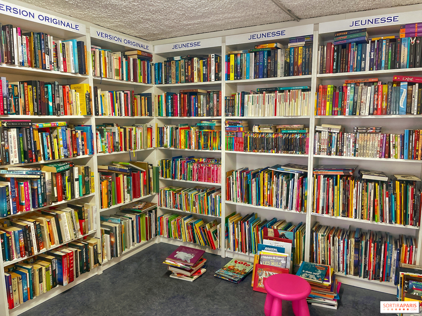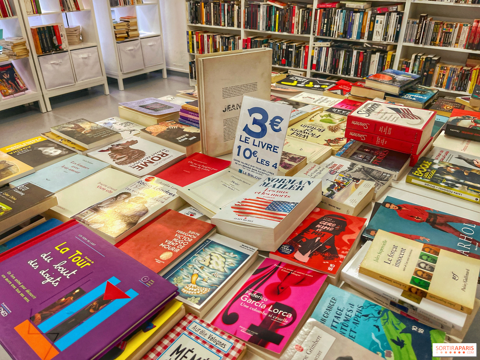 Nel cuore di Belleville, una piccola libreria di seconda mano offre ai cacciatori di occasioni della capitale o di passaggio la possibilità di acquistare libri a soli tre euro! E sì, è così per tutti i libri in vendita: da un'enorme enciclopedia sull'arte a un piccolo romanzo per bambini, è un ottimo affare.
