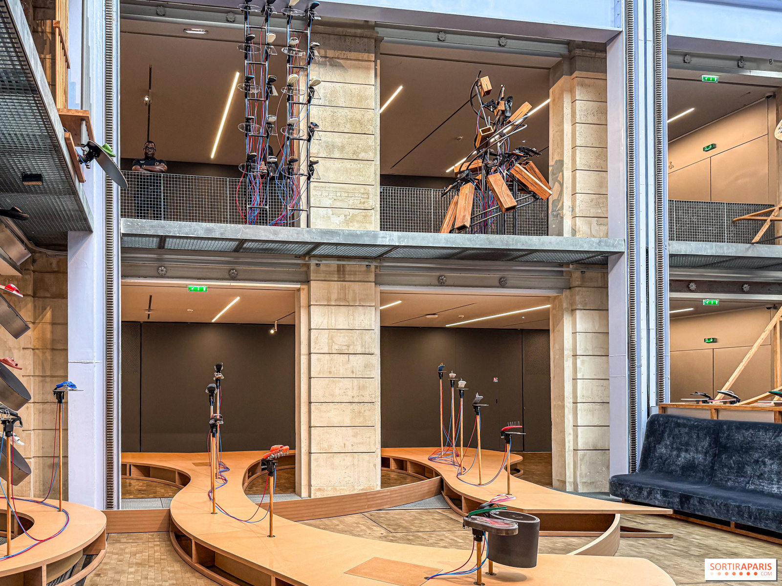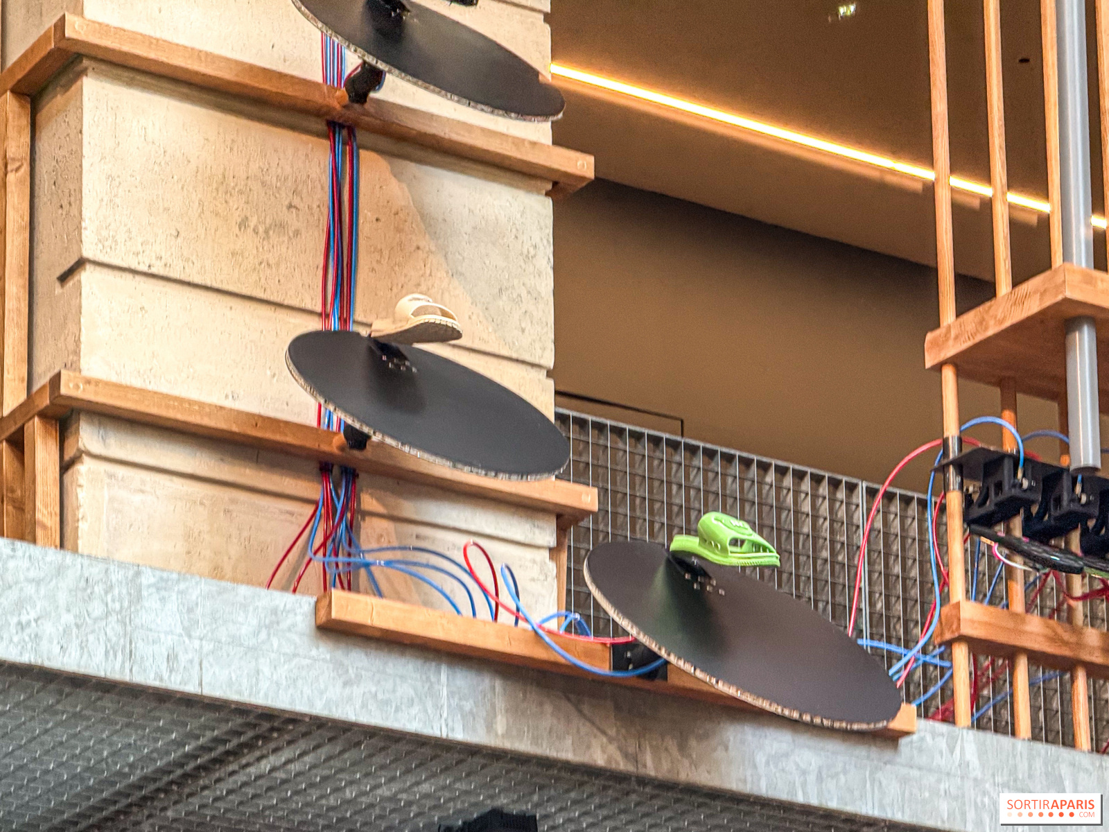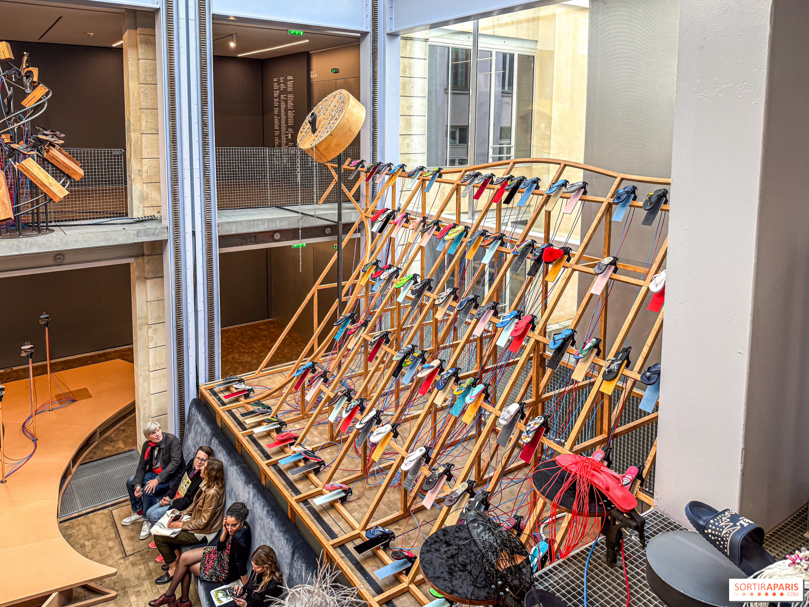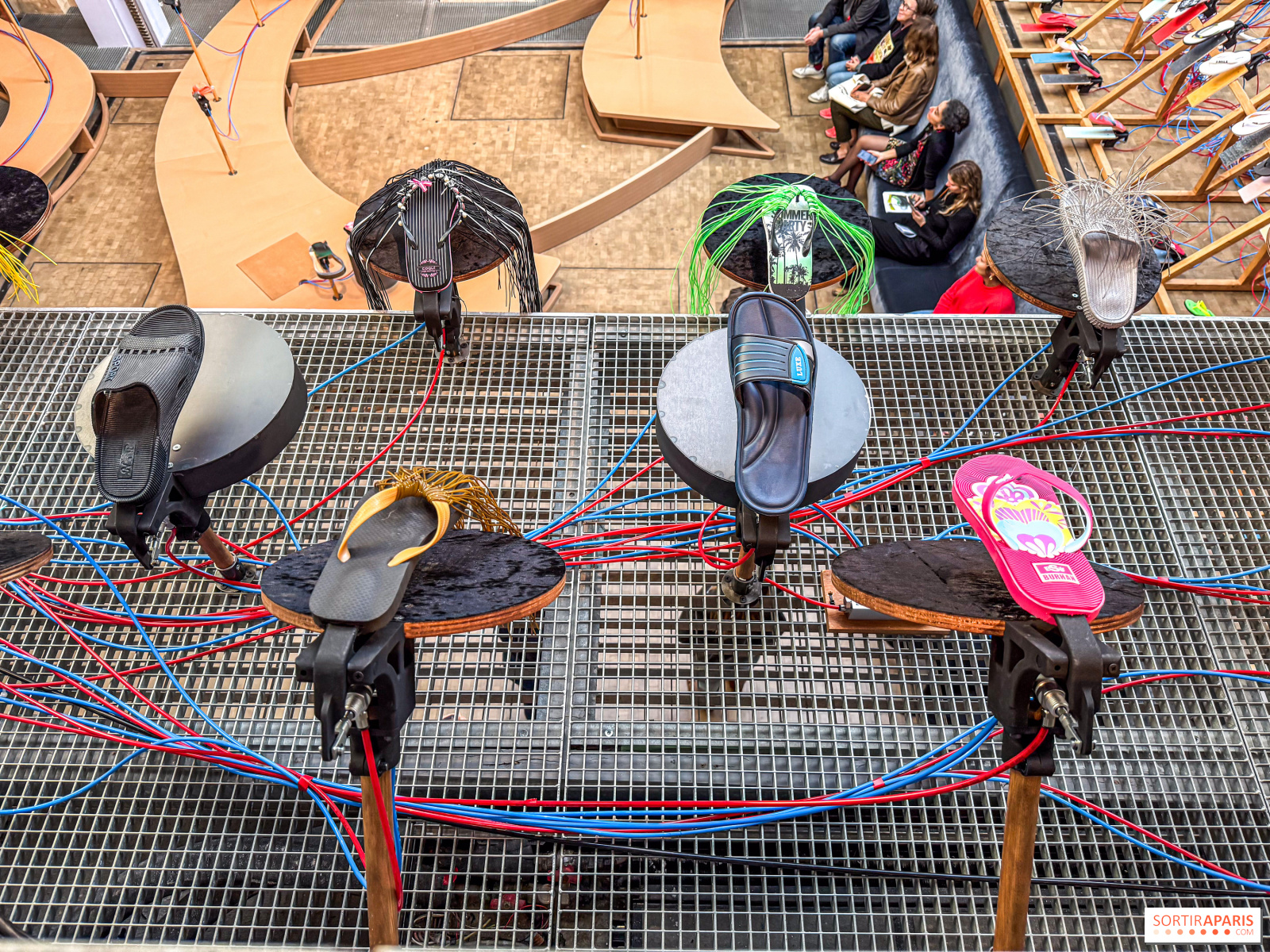 La mostra, una vera e propria installazione immersiva, vi propone per circa 30 minuti di ascoltare decine di infradito che battono ritmicamente su diverse superfici, creando così una musica delle più curiose. Da notare che un grande divano vi permetterà di godervi l'esperienza senza stancarvi di stare in piedi. Un comfort gradito per chi ha difficoltà a stare in piedi. Chi cammina potrà approfittarne per salire al piano superiore e ammirare l'installazione da un'altra angolazione.