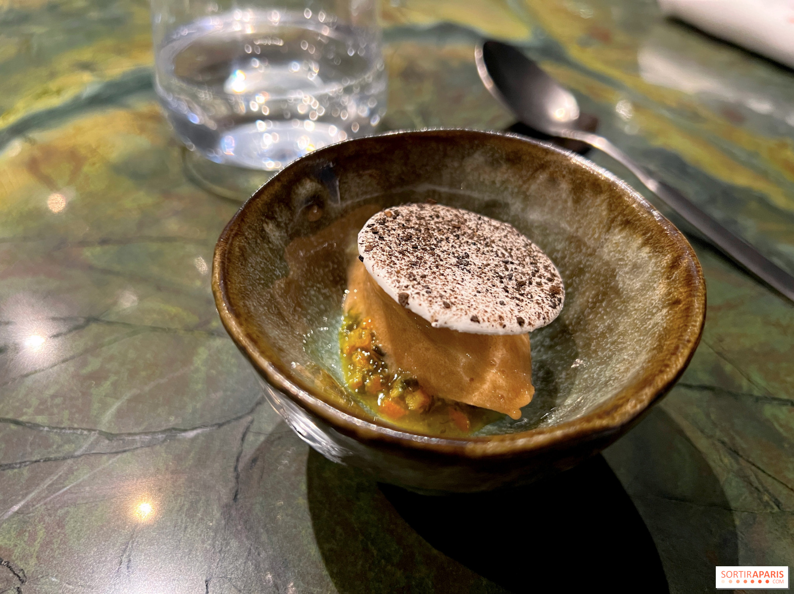 Questa tavola franco-malese segna, infatti, il ritorno nella capitale del duo Jonathan Caron e Manogeran 'Jack' Shasitharan, finora alla guida di L’Itinérance a Mers-les-Bains. Se il primo collega vanta un percorso solido (Bernard Pacaud, Christophe Pelé, e poi il defunto L’Innocence, premiato con la stella Michelin nel 2020), il secondo porta in dote esperienze nelle grandi Case (Parigi-Nice e il suo chef David Le Corre, l’Espérance di Marc Meneau, la Côte Saint-Jacques con Jean-Michel Lorain, il Saint-James a Parigi, e il Petit Hôtel Confidentiel).