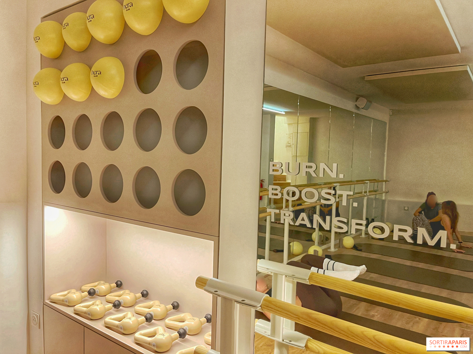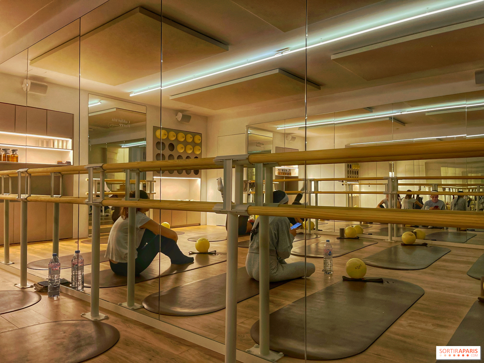有酸素運動が多い、少ない、お尻に重点を置いている、ヨガがある......私たちは、コントロールされた動きと等尺性筋力トレーニングのおかげで、あらゆるレベルと年齢に合うようにデザインされたクラシック・バージョンを試すことができた。小さなボール、ゴムバンド、ウェイトという3つのアクセサリーが用意され、クラスを通して使用した。