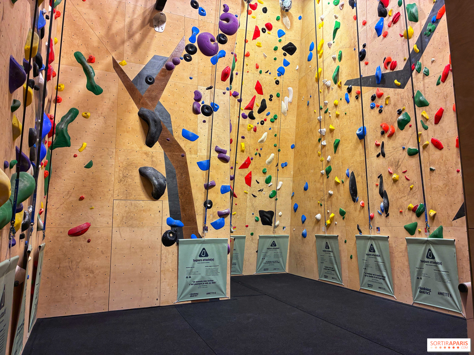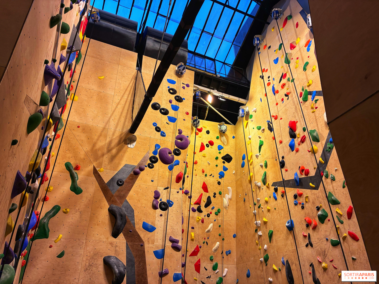 高みを目指すなら、「Climbing District」クライミングジムがおすすめです。ここには約50のコースがあり、8メートルから15メートルまでの高さで、初心者から経験者まで誰もが気軽に挑戦できます。自由に登るもよし、コーチングを受けるもよし、友達と一緒に登るもよし、すべて24ユーロで利用可能です。小さなガラス天井に面したこのエリアは、空を見上げながらクライミングを楽しめるのが魅力。広々としたスペースで、開放感あふれる体験が待っています。