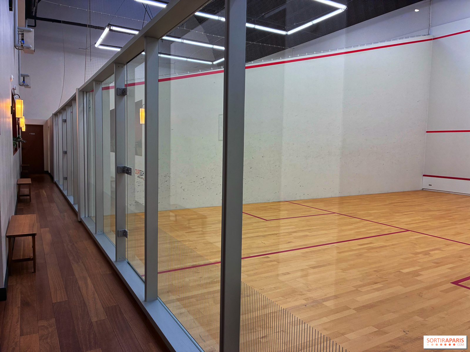 <strong>スカッシュ</strong>のコーナーでは、新しいコート4面が用意され、対戦や大会で汗を流せます。週を通じて予約可能で、1セッションあたり<strong>24ユーロから</strong>ご利用いただけます。毎週金曜日の夜には、事前登録制の<strong>オープンスカッシュ</strong>イベントも開催されており、初心者から上級者まで気軽に参加できます。