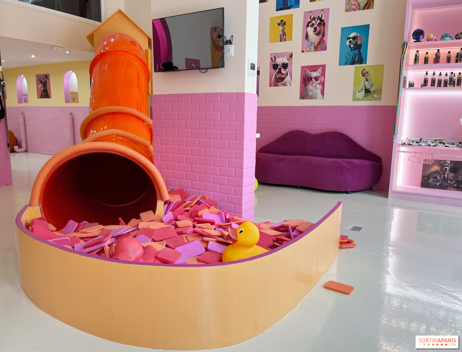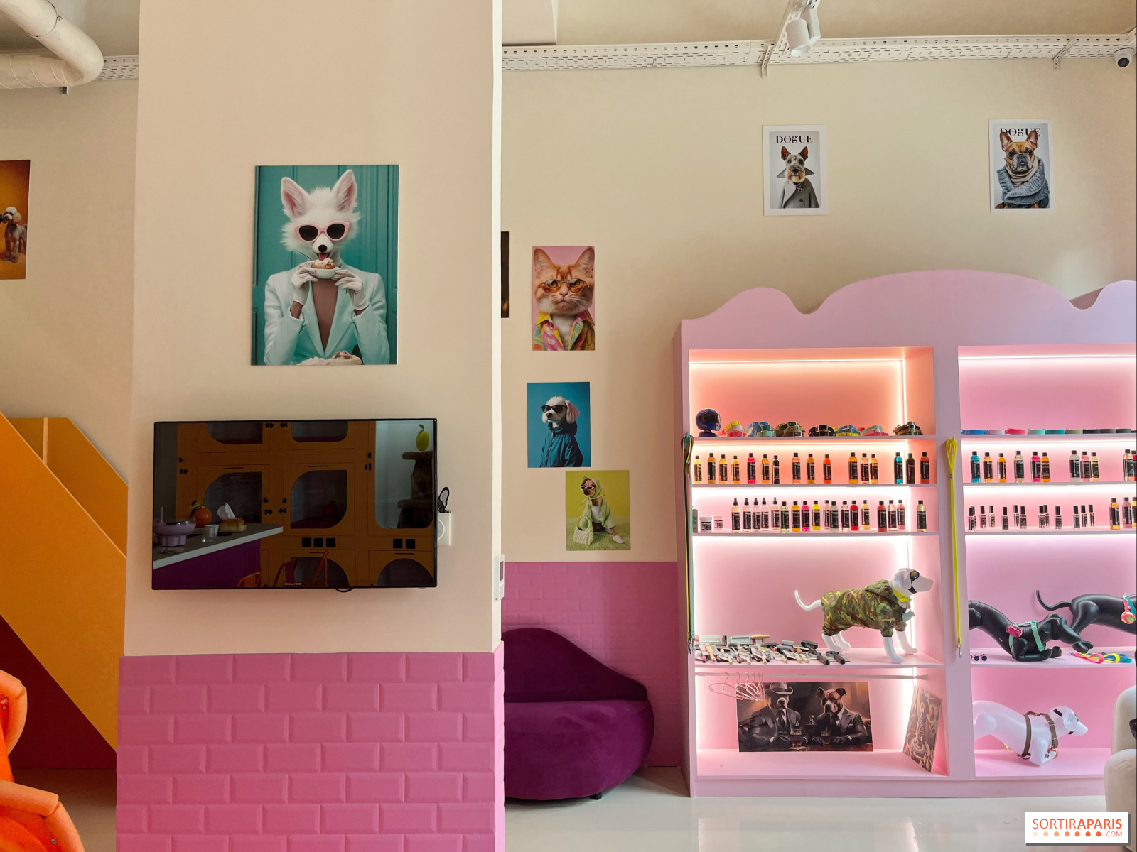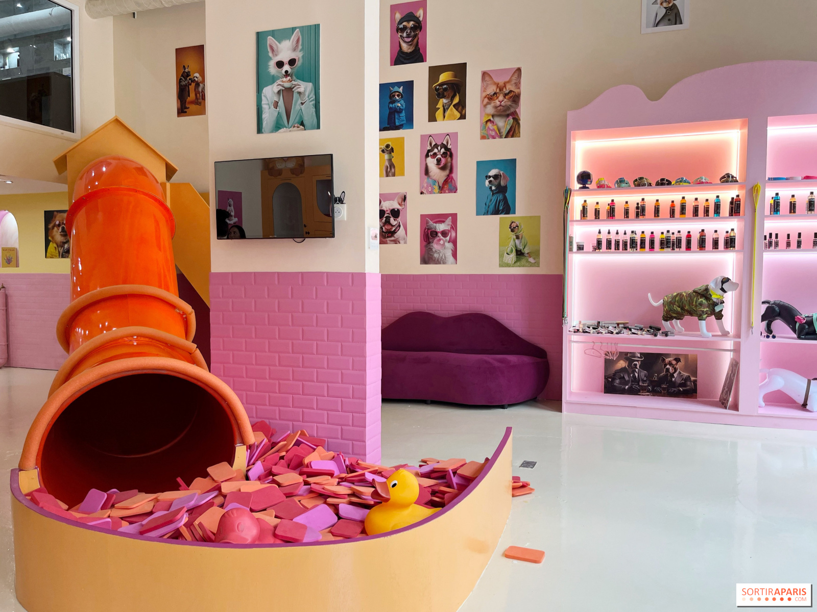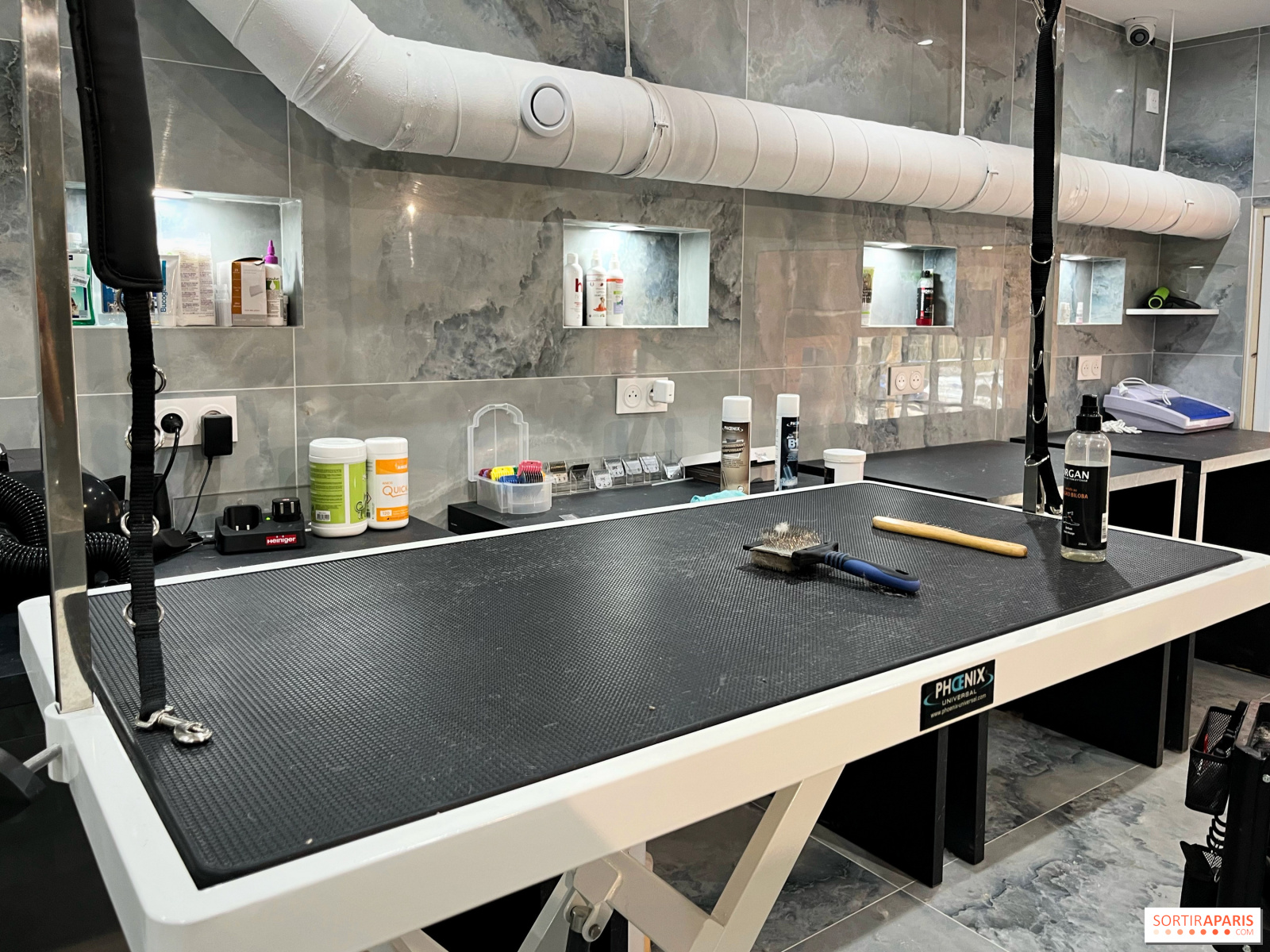 敷地内のブティックでは、シャンプーやグルーミングの必需品、パタプーフのパートナーが手作りしたリードやアクセサリーを販売している。猫のグルーミングも受け付けており、カテゴリー分けされた犬のグルーミングは、オフピークの枠が予約されている(詳細はチームに問い合わせを)。分類された犬種の犬も、チームによる確認が行われれば受け入れることができる(念のためチームに問い合わせを)。料金は45ユーロから90ユーロで、犬種と体重によって異なる。