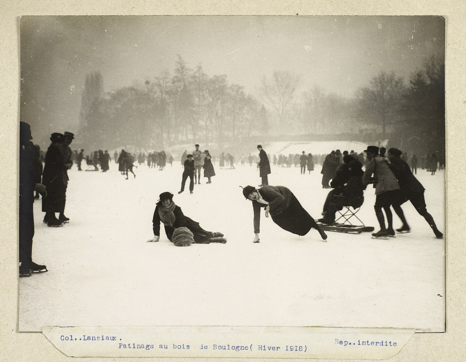 長い間、屋外アイスリンクがパリの中心部に登場する前の冬の光景として、ブローニュの森の湖は市民にとって夢のような舞台を提供していました。最も厳しい寒冬には、水面が凍りつき、滑らかなアイスバーンとなり、優雅で華やかな集いの場となったのです。その当時、すでにナポレオン3世の時代に整備され、都会のオアシスとなっていた<❤️>森の中は、冬の季節にはまったく別の表情を見せていました。下湖や時には上湖も、遊び場として親しまれていました。