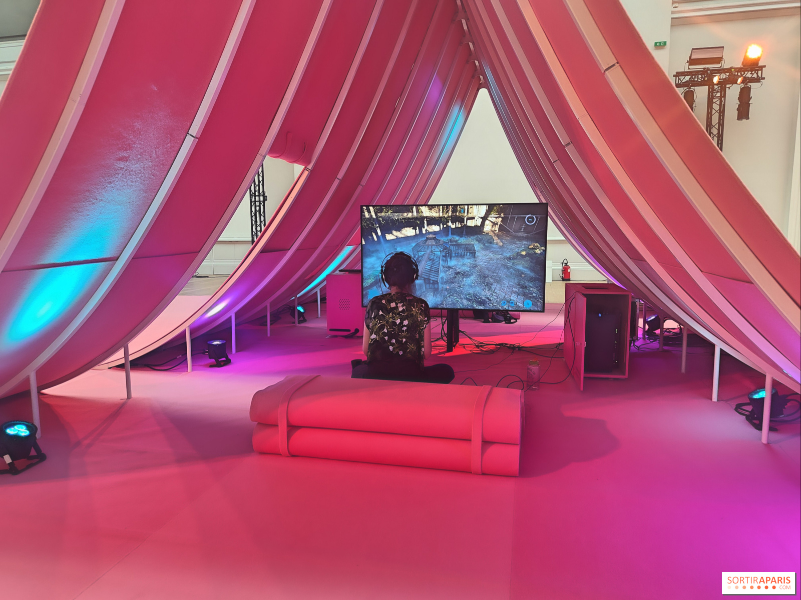 そこにあるのは、ピンク色の大きな建物と、エリアごとに分けられたテントの数々だ。それぞれのテントの下には、共同制作のビデオゲームやボードゲーム...。その間に、ミーティング、交流、パフォーマンスなどのスペースがある。このアイデアは、必ずしも同じ活動に参加しなくても、一緒に存在することだ。この大きくて、フレンドリーで、楽しいセンターで、共に楽しみ、話し、耳を傾ける。