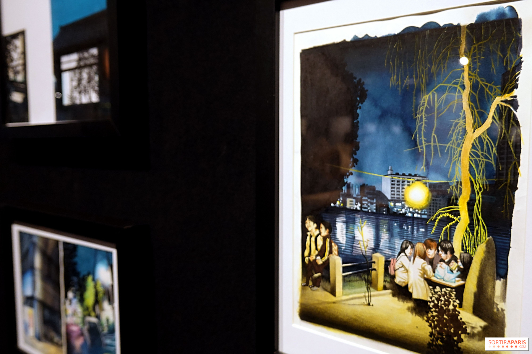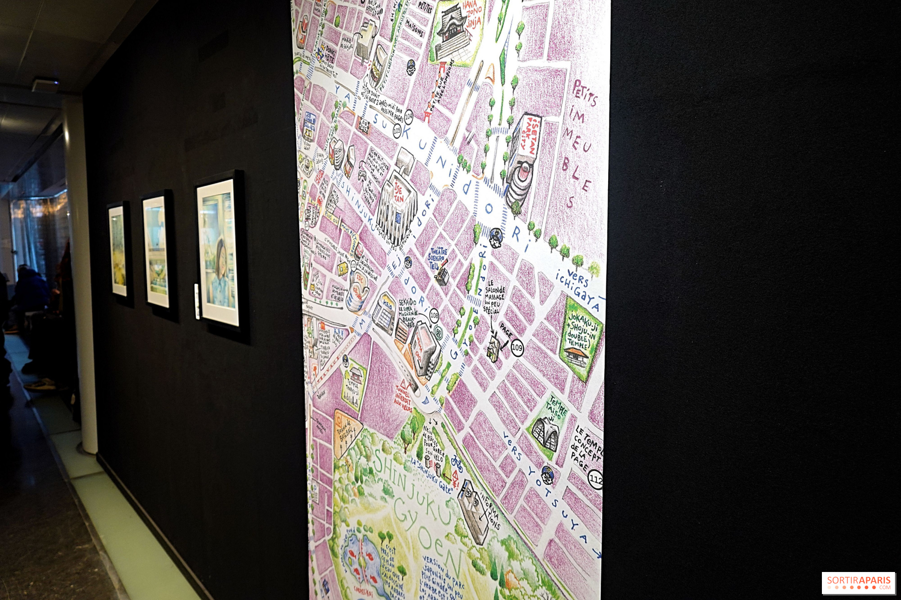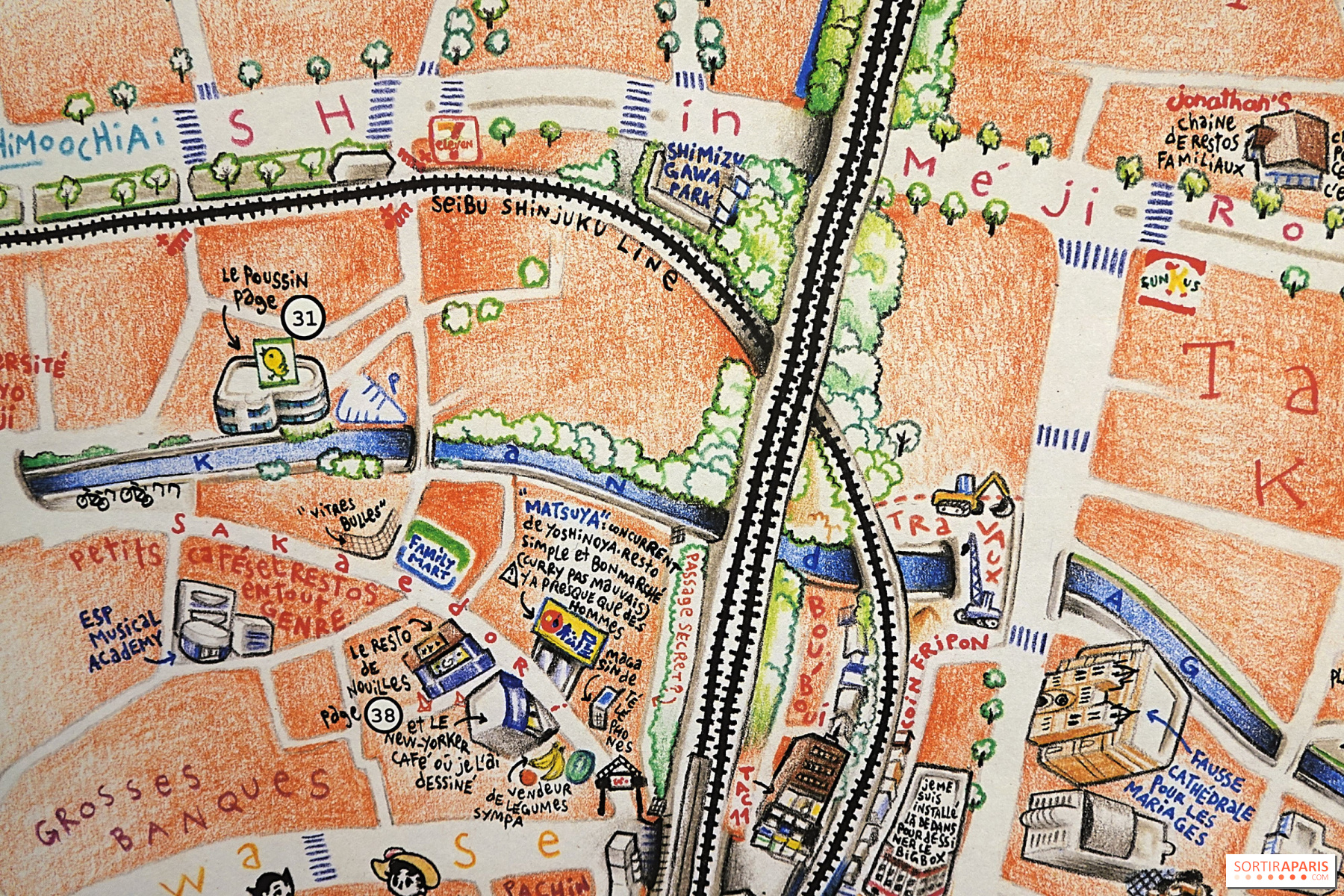 ここでは、未来的なビル、木造の粗末な家、小さな警察署などを見ることができます。 フロラン・シャヴエは、彼の目を通してこの街を眺めることを提案しています。細部へのこだわりと、ニュアンスのある、あるいはコントラストのある色彩が魅力です。「東京散歩」のオリジナル原画や、「高田馬場」、「新宿東口」、「表参道」など、日本の首都の主要な地区や場所を捉えた大きな絵に、より長く目を留めてしまう。