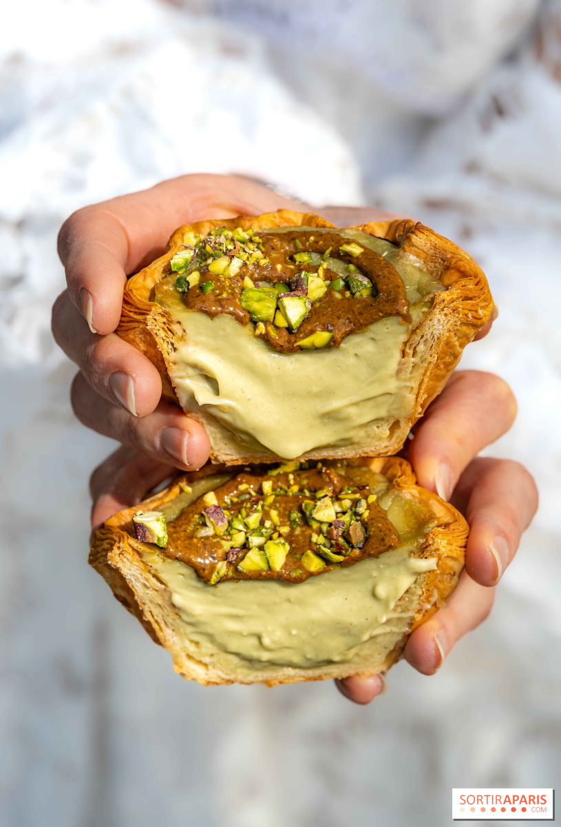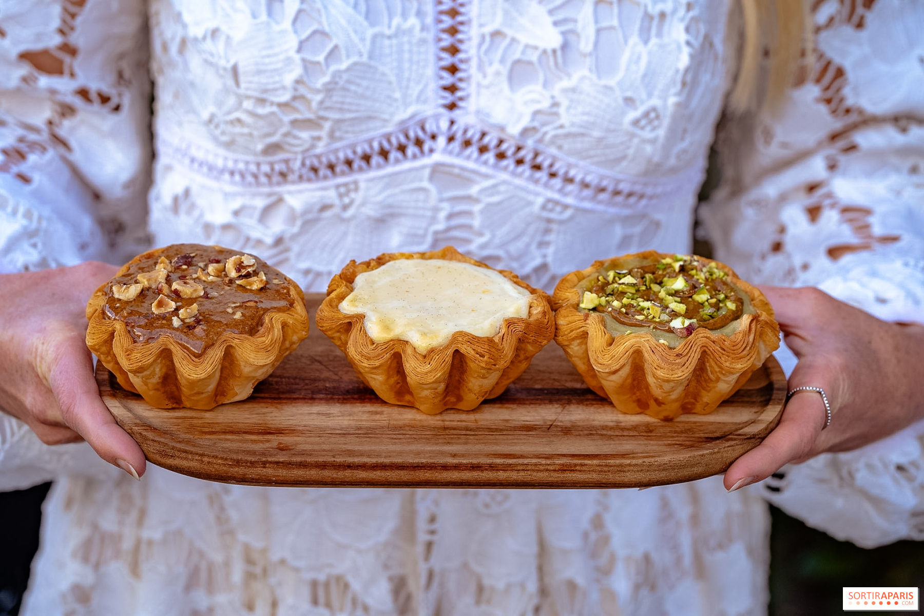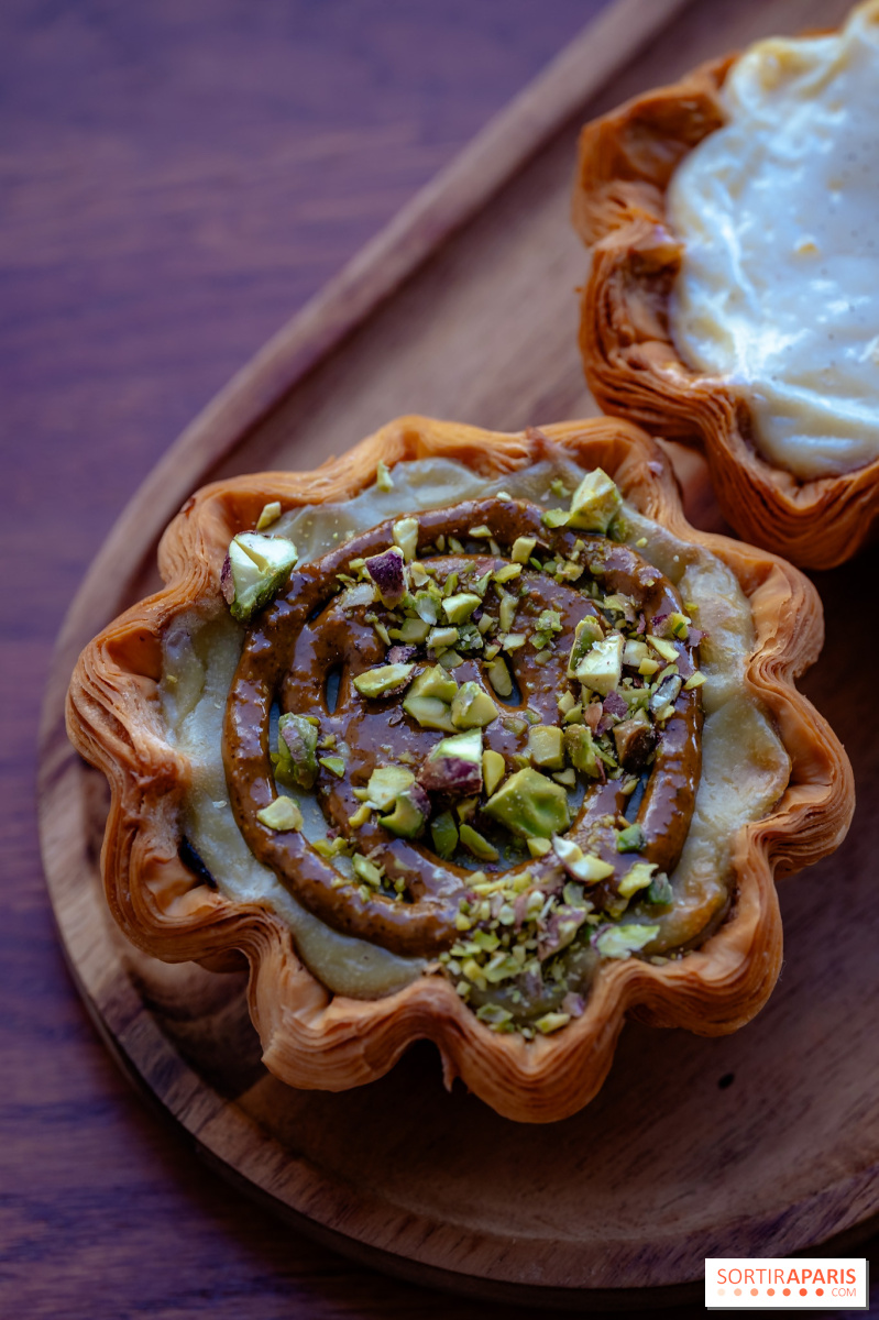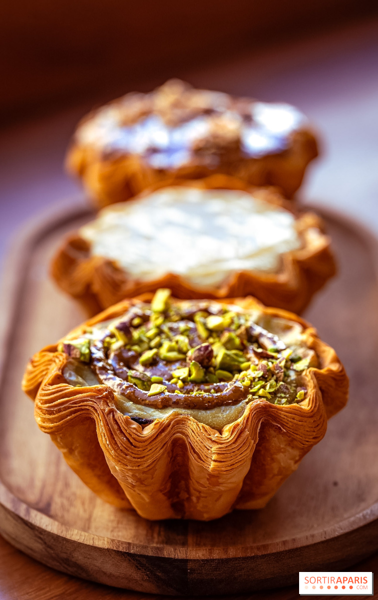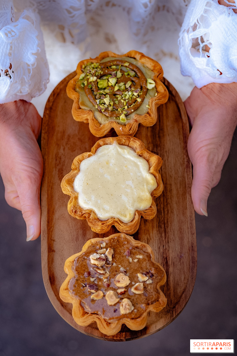 手作りのflans maisonは、店頭の看板商品として際立つ。Louise Riot は私たちが立ち寄った際に、いくつかのバリエーションを提案している:vanille, pistache et praliné、すべて卵不使用で、見た目は完璧、風味ははっきりと主張するのに砂糖の過剰さはない。